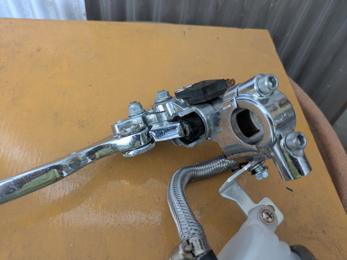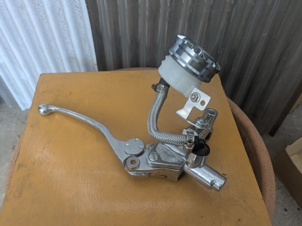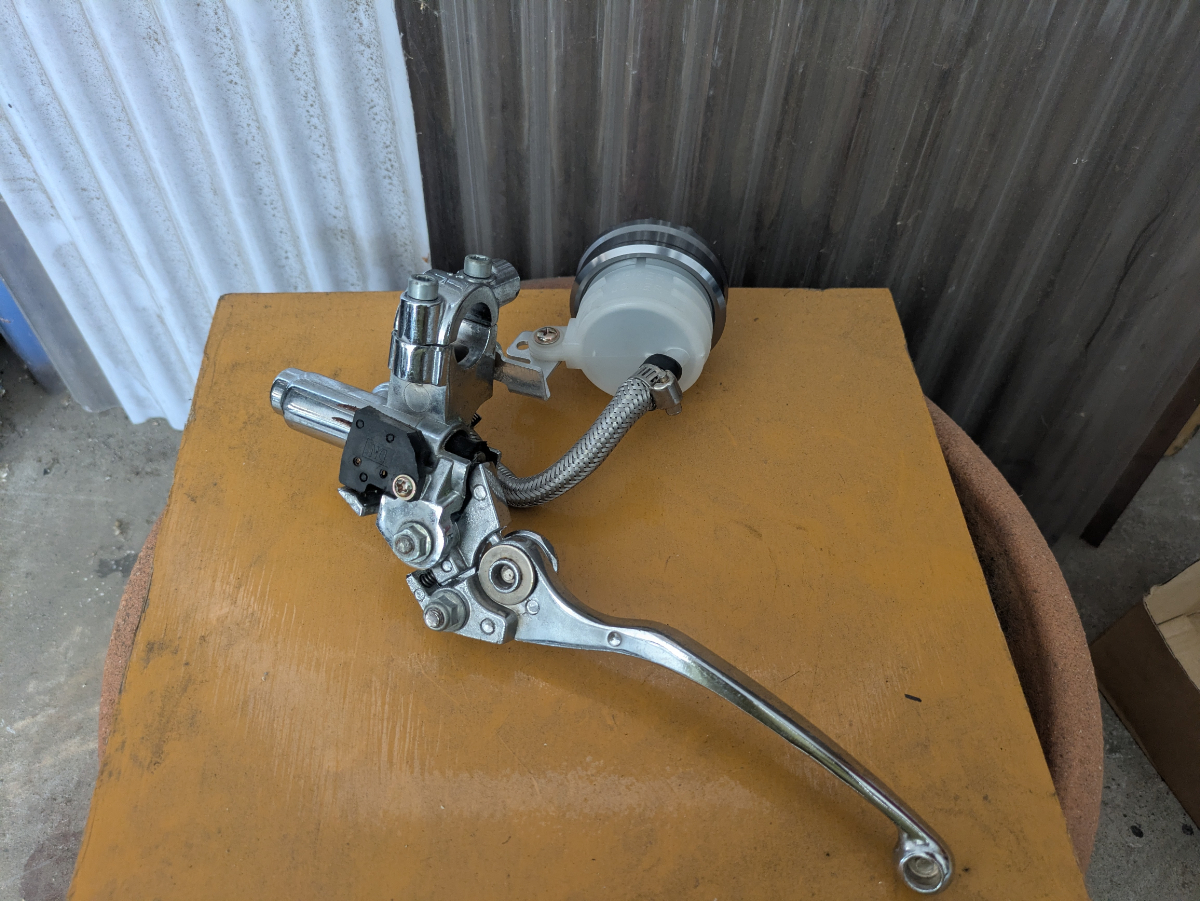 | 落札後に発送方法で宅急便(ヤマト運輸)を選択された場合、送料0円と連絡されますが、送料込みではなく商品到着時に落札者側で送料を支払って頂く【着払い】ですのでご注意ください 着払い料金についての質問は、金額ではなく概算サイズでの回答になります。差額でトラブルになった事があるので、宅急便発送については元払いは一切お断りします。 持ち込み割引ほか各種割引適用もケースバイケースですので割引なしの基本料金とお考え下さい。 ★新規及び評価の低いIDの方へのご注意★ 事前質問無き新規IDからの入札は取り消させていただきます。当方の独断による判断にて評価に不安のある方の場合も同様です。操作が間に合わずに落札されてしまった場合でも【落札者都合】にて取り消しを行います。ご了承下さい。 ※Those who cannot understand Japanese are not allowed,Cannot be shipped overseas! 代理入札や代行業者による入札は固くお断りします。海外発送もしません。 以前、間に合せでとりあえず装着してたものです。クランプは22.2です。フルードを洗わずに保管していたのでラバー部ひび割れあります。このまま使用するには危険ですので部品交換をオススメします。フルードキャップは使用感少なめです。 | ||