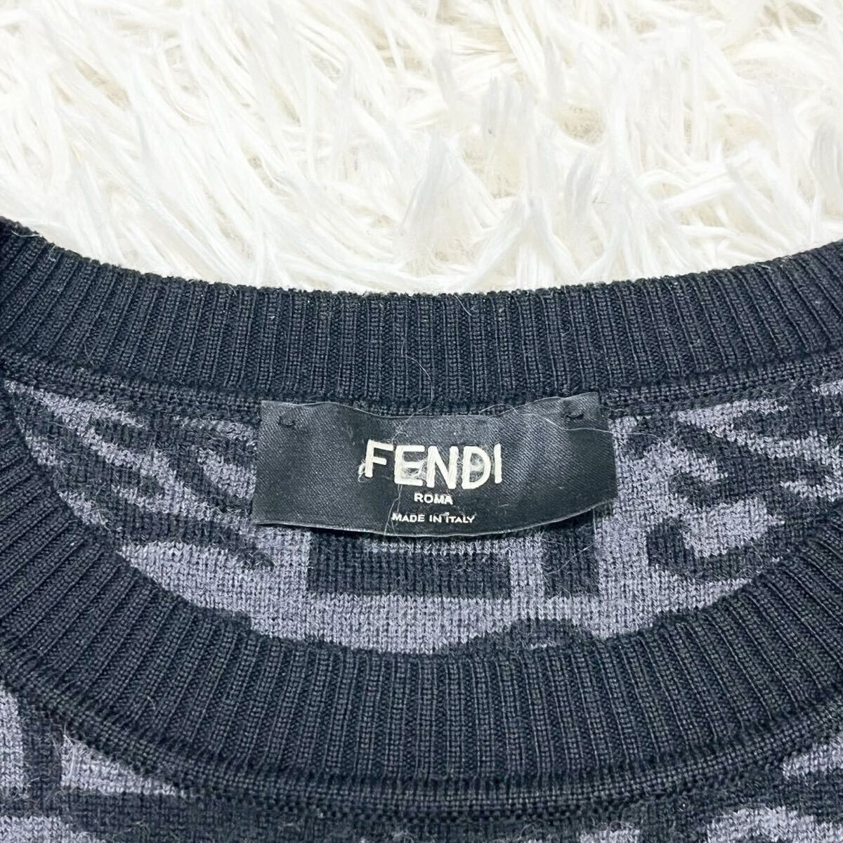 未使用級 Lサイズ フェンディ FENDI セーター ズッカ柄 ニット FFロゴ ブラック ラムウール 羊毛 メンズ 黒 総柄 長袖 トップス