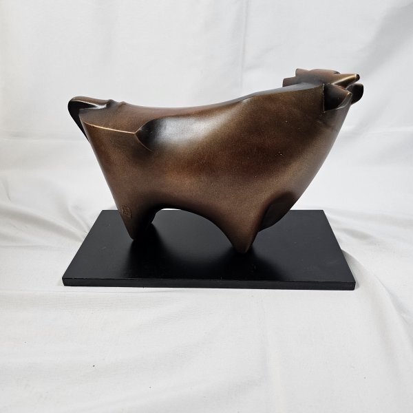 日展彫刻家・**三枝惣太郎(さえぐさ そうたろう)氏**が手掛けた、重厚感のある**牛(丑)の置物**です。