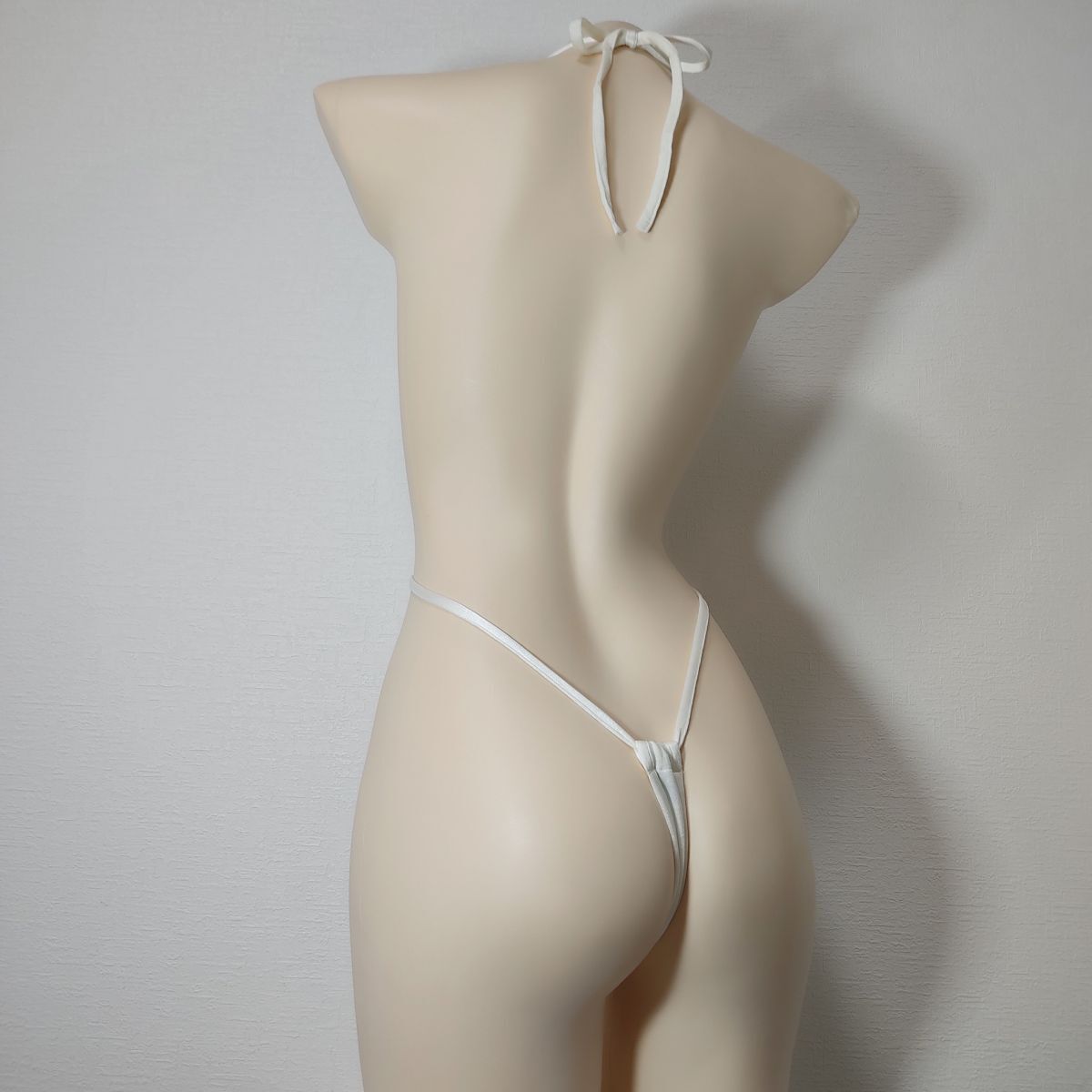 73*トアミレオタード(L程度)★超ハイレグTバック紐ホルターネック光沢ホワイト白★伸縮性あり男性も