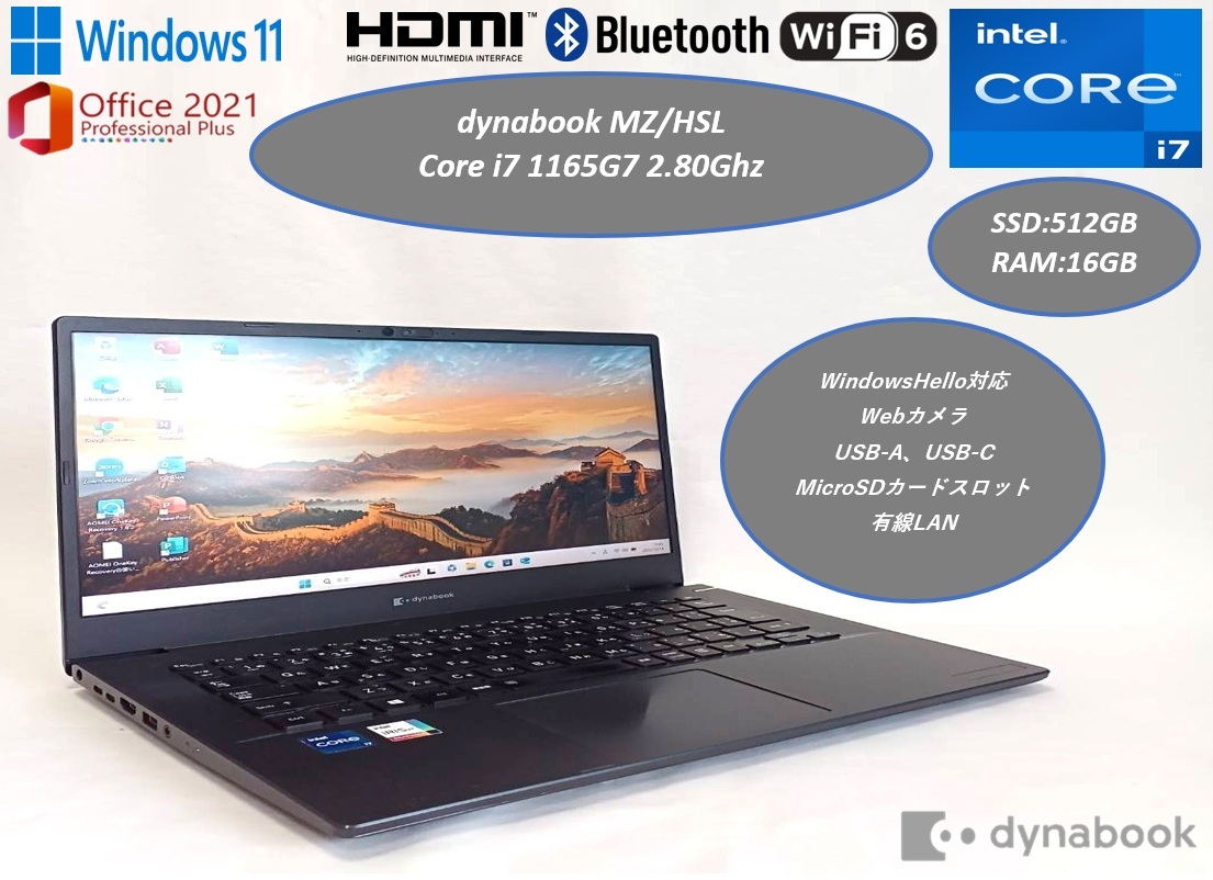 2021年製 美品 高性能 軽量 14型 dynabook MZ/HSL★Win11 Pro+Office2021★Webカメラ USB-C WindowsHello対応 MicroSDカードスロット | |||