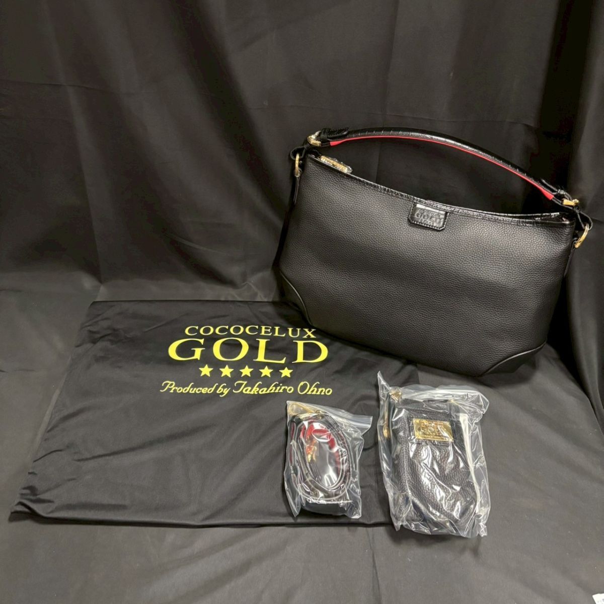 BKK498T 未使用 COCOCELUX GOLD ココセリュックスゴールド 2WAY 型押ワンハンドルバッグ/マルチケース付き レッド×ブラック系 箱/保存袋付 | |||