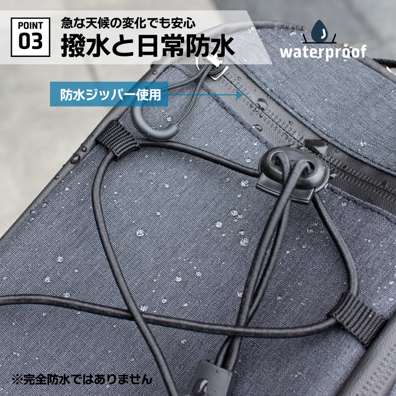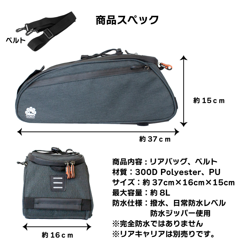 リアバッグ商品内容リアバッグ、ショルダーベルト サイズ約37cm×16cm×15cm 正味重量約500 g 材質300D Polyester、PU 最大容量約8L 防水仕様防水仕様撥水、日常防水レベル/防水ジッパー使用 ※完全防水ではありません ※商品のカラーはディスプレイ種類環境等により実物と異なって見える場合がございます。 《ご注意》 ・商品は入荷によりキズがある場合があります。 保証対象外になりますのでご了承お願い致します。 ・ディスプレイ環境により実物と色が異なる場合が有ります。 ・入荷時期により予告無く一部仕様変更する場合が有ります。 | |