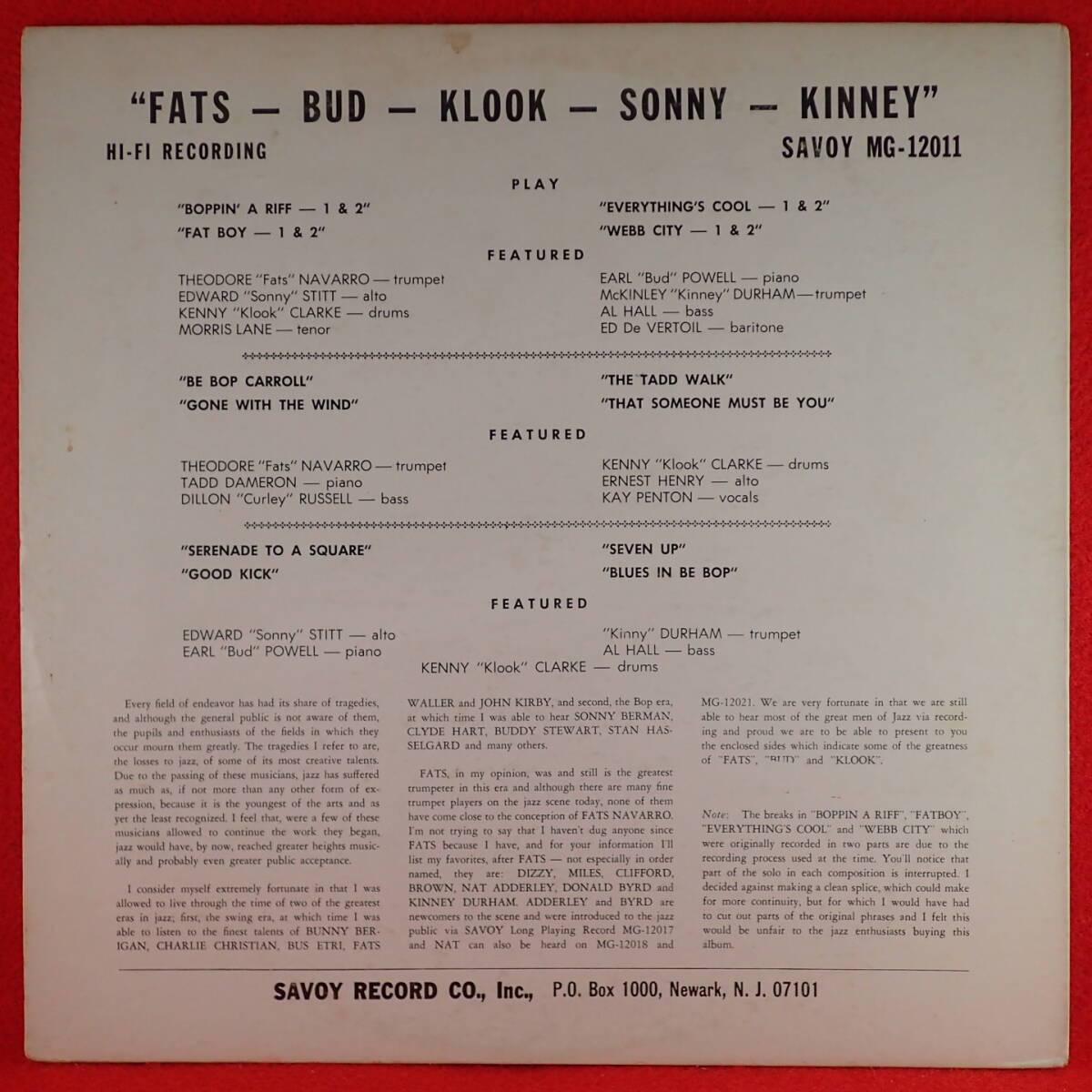 | 宇宙級レア★BUD POWELL+KENNY DORHAM参加★奇跡の極美盤★USオリジナル★SAVOY★赤★RVG★FATS NAVARRO/FATS-BUD-KLOOK-SONNY-KINNEY | ||