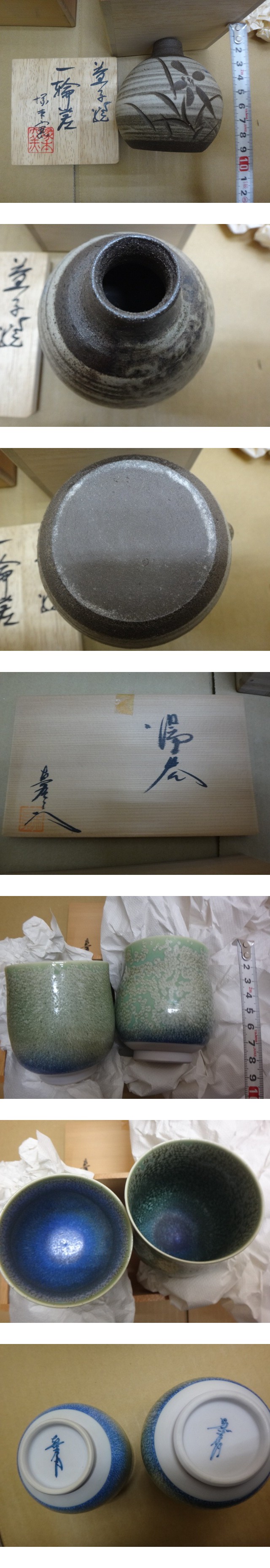 | 備前焼 馬場祥輔 湯呑/益子焼 塚本窯 一輪挿し 他 陶器 3点 おまとめ | |||