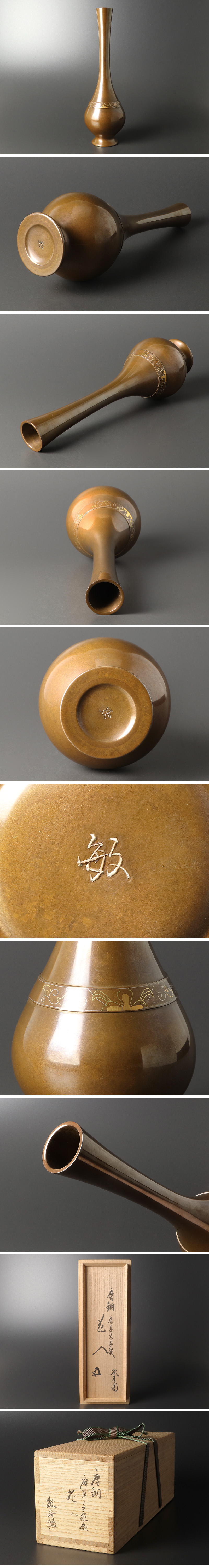 | 【古美味】本江敏彦造『鵬雲斎書付』唐銅 唐草文象嵌花入 茶道具 保証品 |