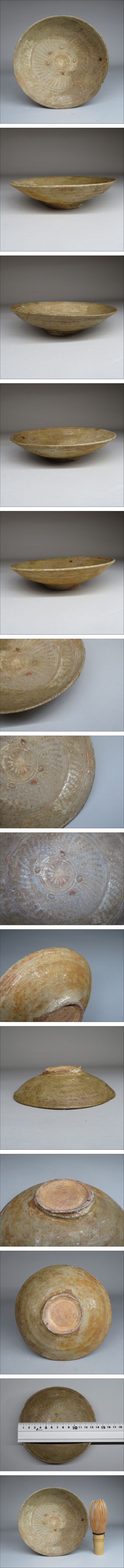 | 【李朝/高麗 特集出品】李朝三島 粉青沙器象嵌縄簾文平茶碗 朝鮮古陶磁器/李朝時代 朝鮮美術 | ||||