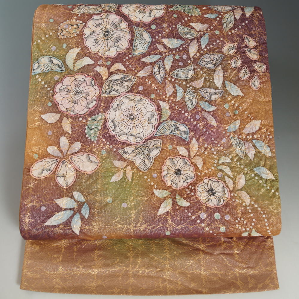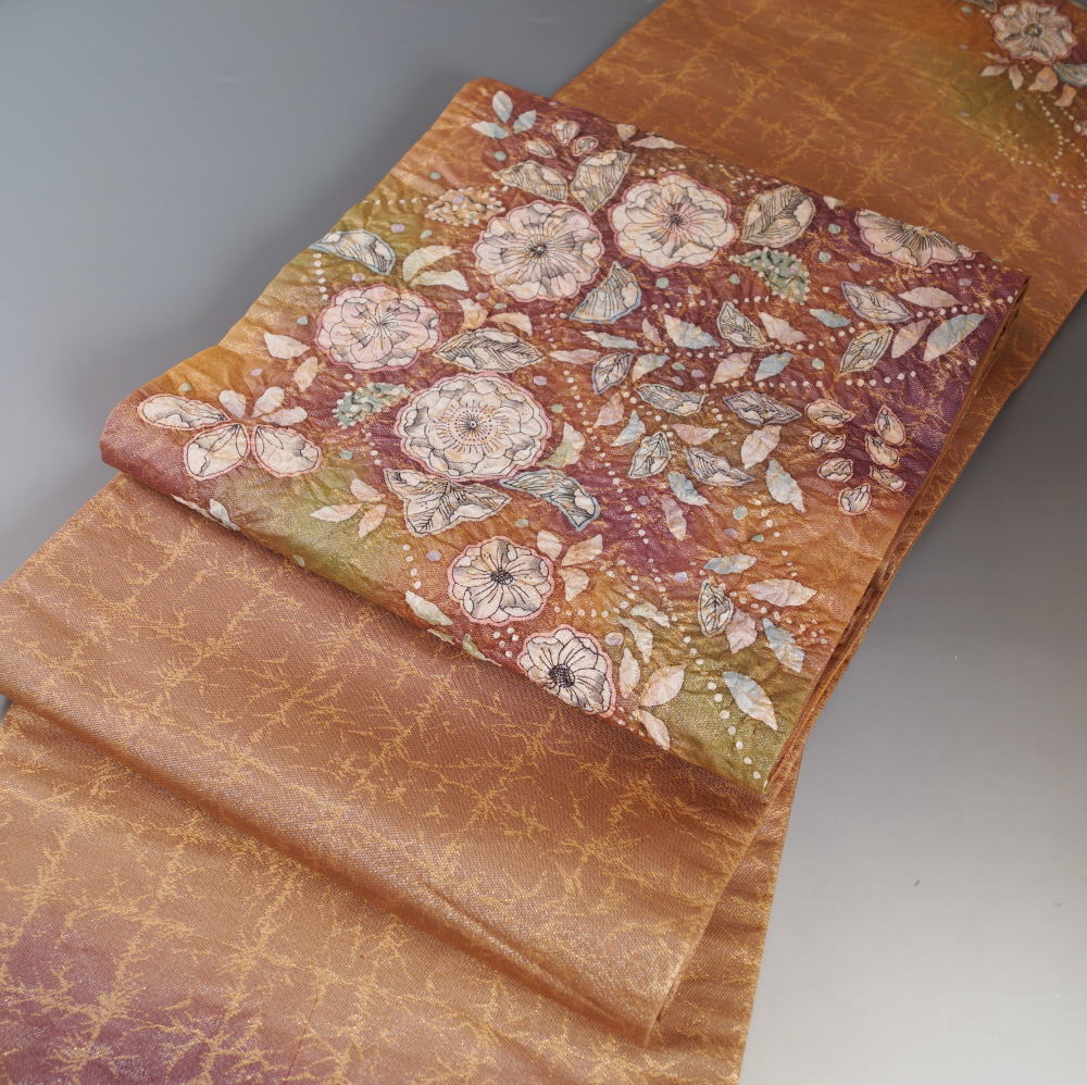 | 商品 説明 | 銀通しの施されたピンクベージュ色系のしっとりとしたちりめん地に、道長ぼかしに辻が花模様が絞り染めされた訪問着と、金通しの施された山吹茶色の地に辻が花模様が絞り染めされた袋帯、鮮やかな金糸×白群色系の平組帯締めの3点セットです。 お着物は十日町の絞り染め人気作家 吉乃一廉氏謹製、下前に銘と落款が入っております。 |