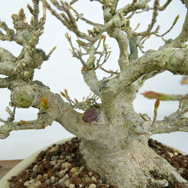 | ■植物ですので撮影時期や季節によって剪定などの手入れにより写真から変化がございます。撮影日をご確認のうえ、ご注文ください。 ■春頃~7月上旬。葉すかし、葉刈りをおこないます。目的として全体的な枝や葉の量を減らし風通しを良くし、幹にしっかりと日光を当てるため。 【楓盆栽】 春先に芽吹き、夏頃には新緑、秋頃には紅葉、冬は寒樹姿と四季を通して楽しめる植物です。 |