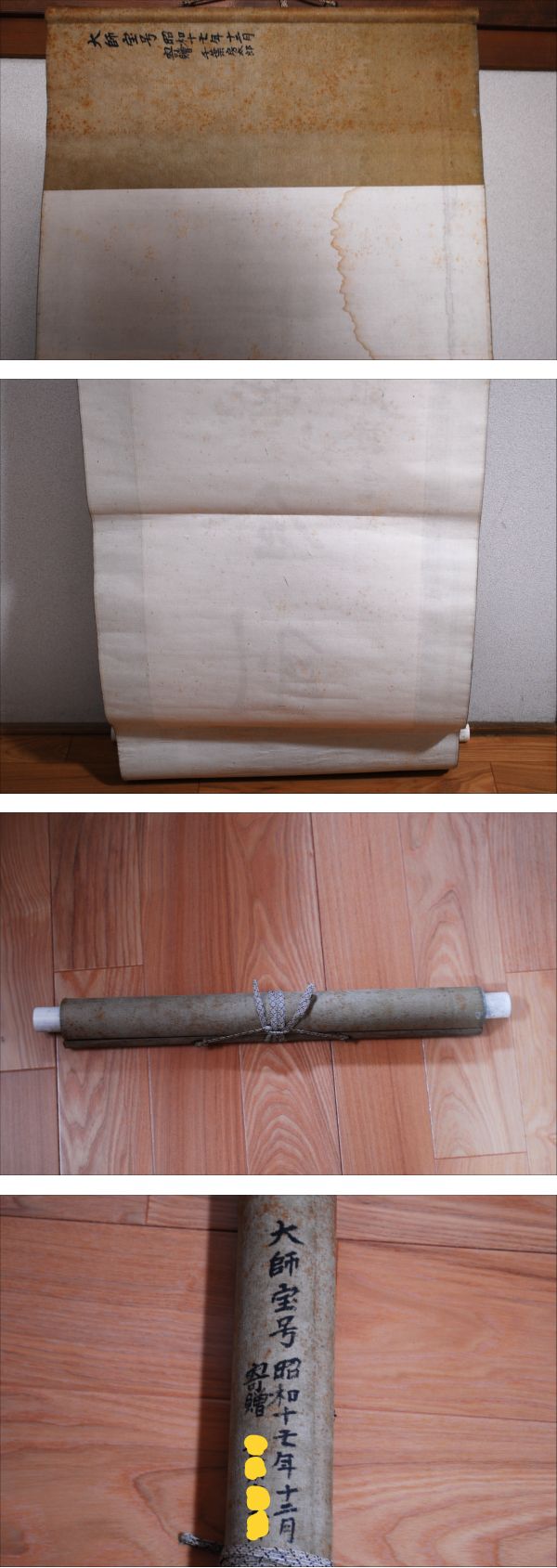 | 商品: 掛軸 書 サイズ: 書 横約32.5cm×縦約132cm 全体 横約45cm×縦約194cm(横は軸部含まず) 軸幅 約51.5cm 大まかな測りです。 ※傷・汚れ・シミなどかなりございます。(画像参照)一部名前など書かれた部分を黄色に画像処理しています。 商品詳細はわかりません。画像にてご判断いただけると助かります。 画像のものだけです。 「ノークレーム・ノーリターン」を納得された上でのご入札をお願いいたします。 送料は下記に送料表がございますのでご参考下さい。 ※長期保管、経年劣化がある場合もありますので、よく画像にてご判断お願い致します。ご理解いただける方のみ入札お願い致します。 | ||