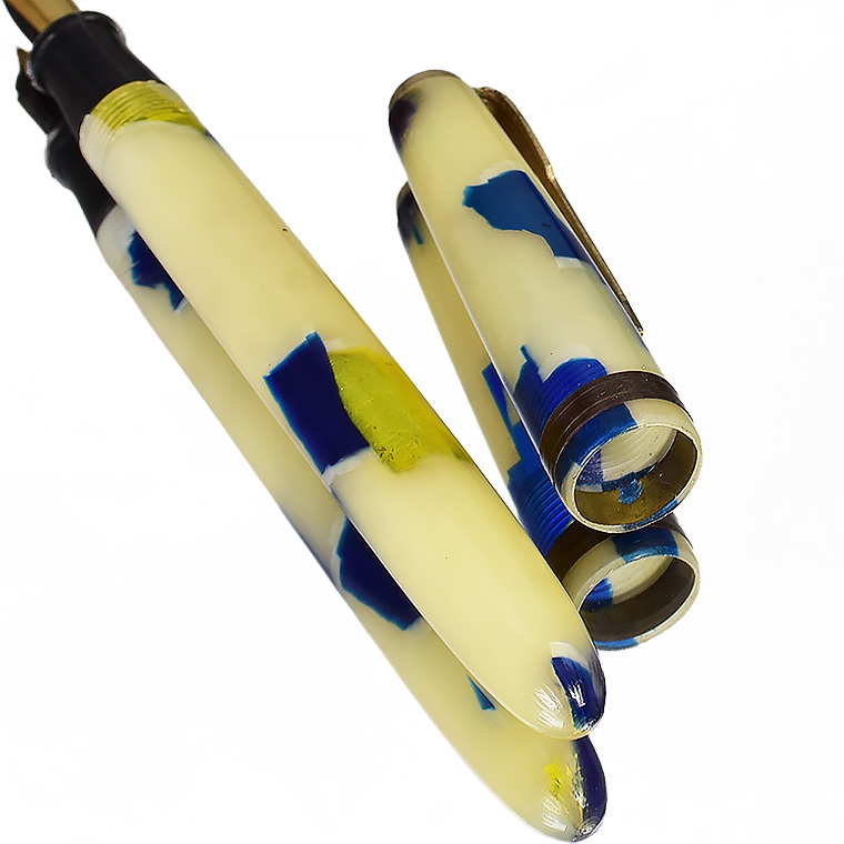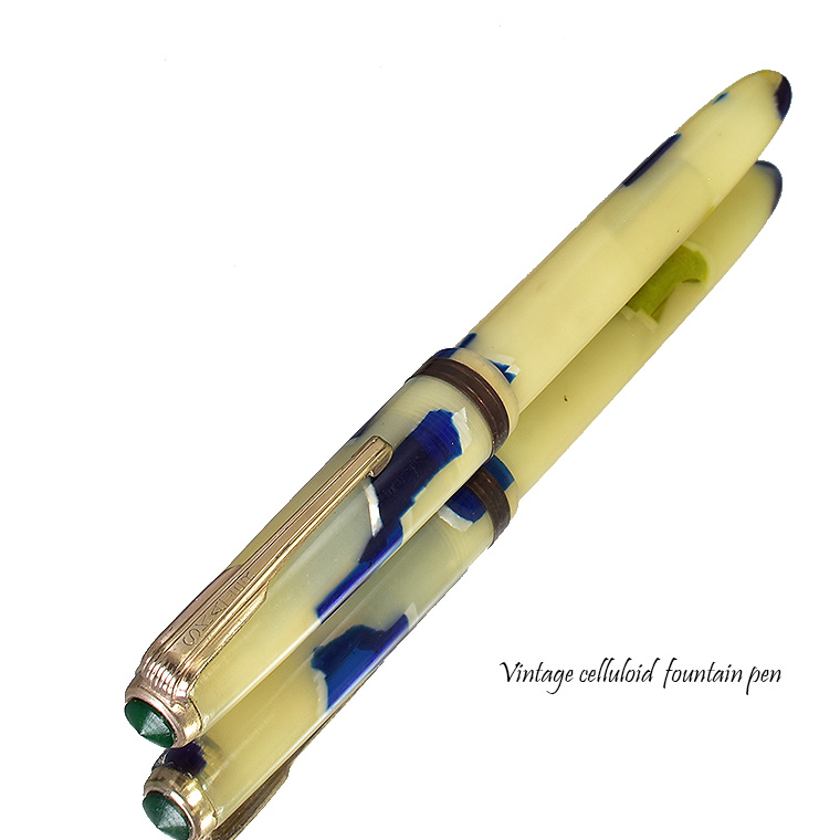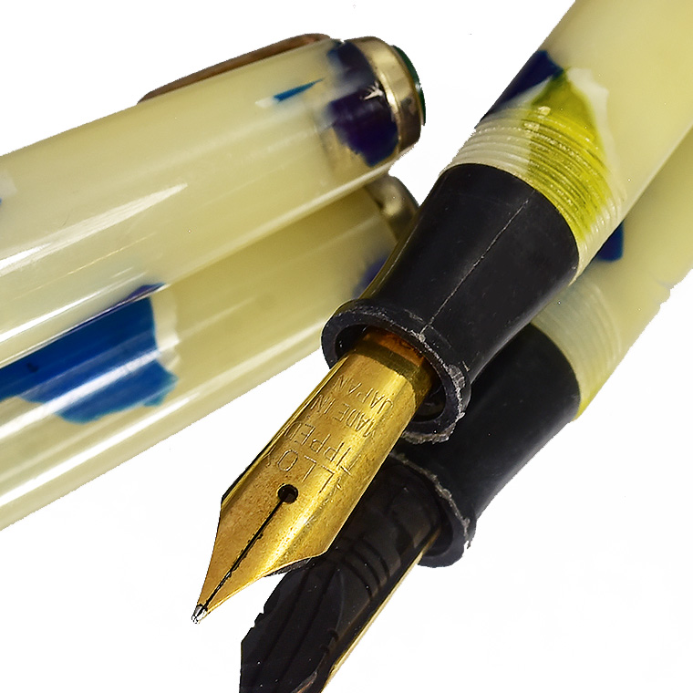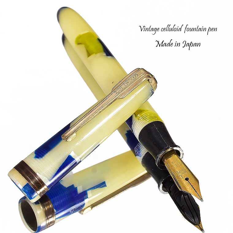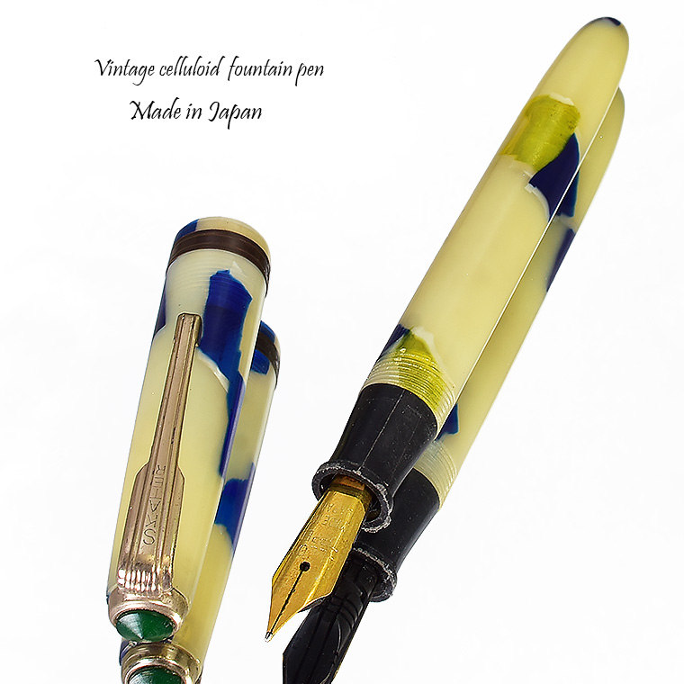 | ビンテージ セルロイド万年筆 中押し式 ペン先 EF(極細)程度 レストア済み 希少な逸品 Made in JAPAN 日本製 ![]() こちらは、1950年代から1960年代にかけて製造された貴重なビンテージセルロイド万年筆。 終戦を迎えた70年程前、かつて日本の下町などでたくさんのセルロイド工場や加工場があった時代、 そういった工房で凄腕の職人さんが、ハンドメイドで仕上げた万年筆、 今回ご紹介するのは、そんな過去の貴重な万年筆をレストアしたものです。 職人さんの工房で保管されていた数少ないセルロイド万年筆を、彼の手によって 少しずつレストアしていただきながら、そしてその手法を教えていただきながら 出来上がったもの、譲ってもらったものです。 約半世紀の間、大事に保管されていたとしても、メンテナンスは必要なコンディションでした。 その為、その職人の指導の下、ひとつひとつ古い部品を取り換え、ニブの調整をするなど、 共同でメンテンナンスを行いました。 ![]() <レストアを行うにあたり…> ペン先選び、ペン芯とペン先がマッチしないと書けません。 (昔の万年筆は、パーツが手作りなので、一つ一つ適したものを合わせていきます。) 当時のペン先は、適合させて温度をかけて、緩めたり固定したりする必要があります。 筆記ができる状態にするまで多くの手がかかりますが、当時の職人さんが作ったペン先、 そのしなりや書き心地。それは現在の市販の万年筆では味わうことができないかと思います。 日本人が日本人の技術で日本の漢字を書くために研ぎだしたペン先。 そのペン先の本当の魅力を引き出すのが職人の技です。 ![]() 今回出品のペン先はEF(極細)程度です。 日本製ニブのペン先をお楽しみください。 ![]() インクの吸入方式は【中押し式】です。 【コンバーターが固定】されてますので、使いやすくお好きなインクを吸入して お楽しみいただければと思います。 ![]() <セルロイドの魅力> 素材はセルロイド、 角度によって、次々と色味をかえるセルロイドは、まるで光が瞬いているようにも見えます。 また、滑らかな肌触りのセルロイドは、しっとりとした質感と 程よい重さをもっているので、本当に心地よいホールディングを堪能いただけます。 ボディサイズは、手の平に収まるサイズで、こじんまりとして見えますが、 当時日本から海外に輸出されていた万年筆の一般的サイズであり、 文豪たちが使う太軸万年筆ではありませんが、本当の実用サイズだと考えられます。 大きな万年筆に見慣れた今見ると、とてもかわいい万年筆に見えます。 ![]() ビンテージ万年筆の魅力は、時代を反映した独特なデザイン、現在では入手困難な素材。 そして、時間の経過とともに増すビンテージの風合いではないでしょうか。 使い込む程手に馴染み、愛着が湧いてくる楽しさは、ビンテージ万年筆でしか味わう ことができません。 貴重なビンテージ万年筆との出会いも一期一会です。 是非ご覧ください。 ************************************************************************* ≪万年筆詳細≫ ニブ : スチール ※日本製 サイズ : EF(極細)程度 機構 : 中押し式コンバーター固定 材質 : セルロイド 長さ : 約125mm 太さ : 約10.5mm(軸)/12.3mm(キャップ) 重さ : 約12g 付属品 :簡易発送用紙ケース ※こちらの商品は金属部などに経年変化が見られます。 筆記には問題はございませんが、稀少なビンテージ品,アンティーク品の特性として ご理解の上、ご購入ください。 実物写真を掲載していますので、写真をご確認の上、ご了承の上、入札ください。 今回出品分は天冠部分に錆がある箇所がございます。 ※モニターの環境により、画像と実物の色合いが若干異なる場合がございます。 予めご理解・ご了承の上、ご購入お願い致します。 ************************************************************************ |