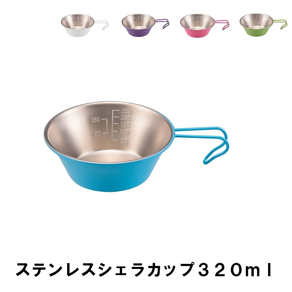 | 商品名 | シェラカップ ステンレス 320ml 径12 高さ4.5 BBQ用 目盛付 広口 食器 日本製 アウトドア 丈夫 積み重ね パープル M5-MGKPJ00638PP |