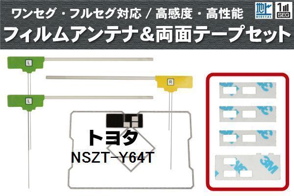 ~フィルムアンテナと両面テープのセット~ 商品名:トヨタ製ナビNSZT-Y64T用 フィルムアンテナ4枚、両面テープ4枚 注文品番:L05Z11Z33NSZT-Y64T 適合型式: トヨタ NSZT-Y64T 弊社提携工場での直接大量製造のため、品質を落とさず、価格を極限まで落とすことに成功しました。 純正品ではありませんが、専門家監修により作成された製品ですので、御安心ください。 フィルムアンテナはエレメント部分だけ残るタイプを採用。 商品を厚紙に挟み、曲がらないように発送します。 ワンセグからフルセグまで、地デジに対応した機器の外部アンテナとしてご使用いただけます。 取付形状をよくご確認の上、お買い求めください。 大量購入をご希望の方は質問よりお問い合わせください。 よろしければこちらもご利用ください。 フィルムアンテナ https://store.shopping.yahoo.co.jp/tns/tns-film.html アンテナケーブル https://store.shopping.yahoo.co.jp/tns/tns-antena.html GPSアンテナ https://store.shopping.yahoo.co.jp/tns/tns-gps.html GPSプレート https://store.shopping.yahoo.co.jp/tns/tns-p-t.html 両面テープ https://store.shopping.yahoo.co.jp/tns/tns-ryomen.html GPSフィルムアンテナ https://store.shopping.yahoo.co.jp/tns/tns-g-f.html | ||