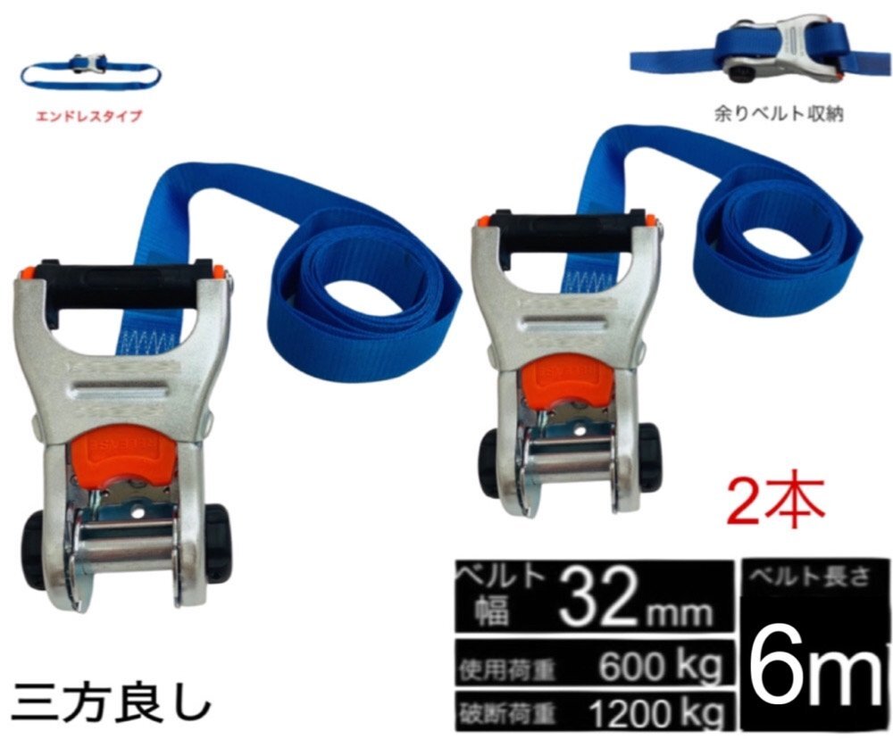ラチェット式ベルト荷締め機 エンドレスタイプ ベルト幅:32mm 長さ 6m ●破断荷重(kg):1200