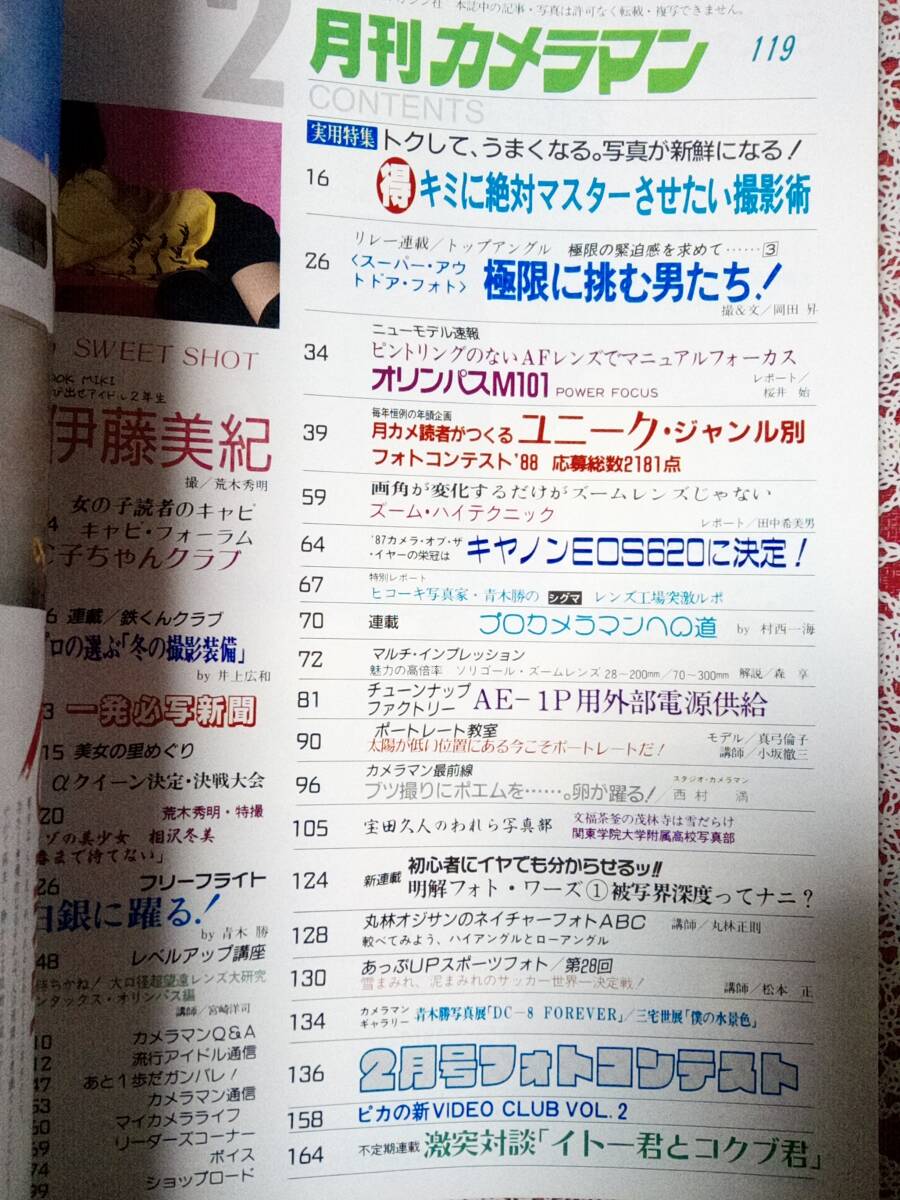 | 商品説明 | 月刊カメラマン 1988年2月号 経年劣化あります(モノクロページの焼け、傷、擦れ) 350g |