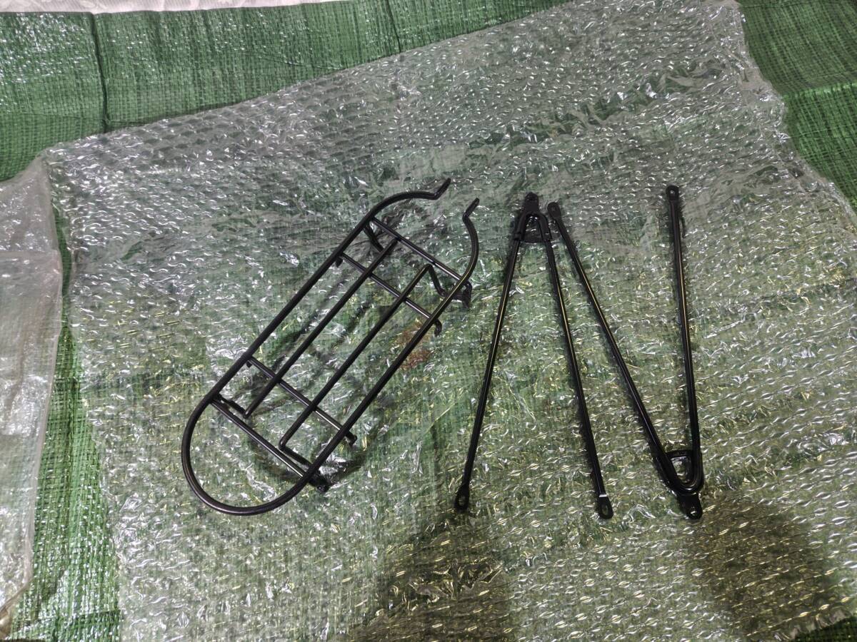 自転車開閉式リヤキャリア 長さ 37cm 幅 閉12cm 開22cm ステーの長さ34cmほど 長期保管の未使用で使用できる自転車サイズは不明です | |