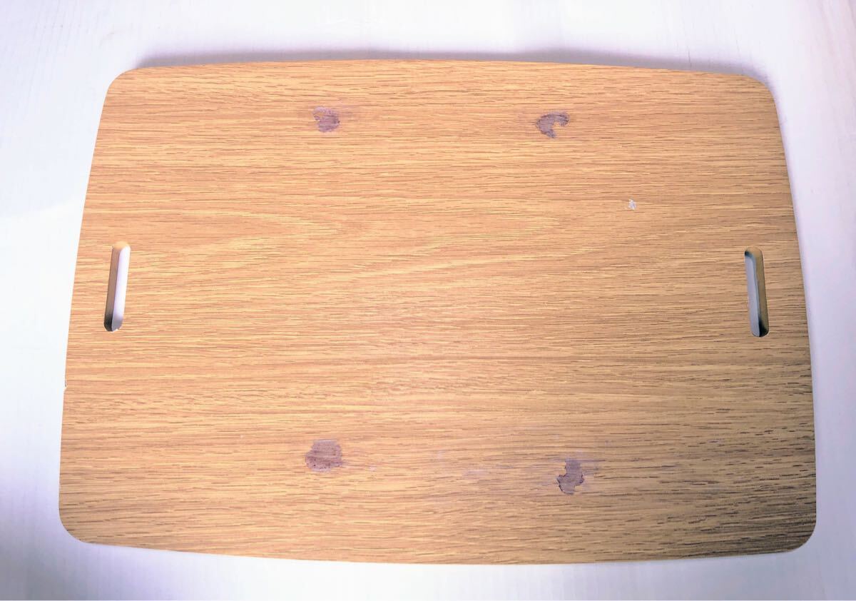 | 商品説明 | 一見きれいですが、テーブル裏面に剥がれが約5か所、端に傷が1か所あります。きれいな面を表にしておけば、特に目立たない状態です。 サイズ 幅43-45㎝ 奥行33-35㎝ 高さ14-15㎝ | |