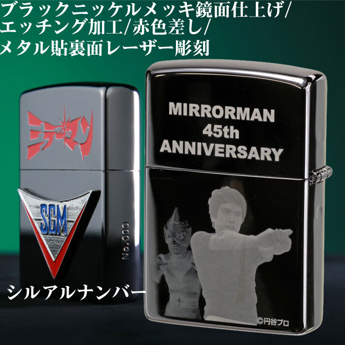 裏面には45周年の文字とともに「鏡京太郎」の変身姿、背景には変身後のミラーマンがレーザーで彫刻してあります。
