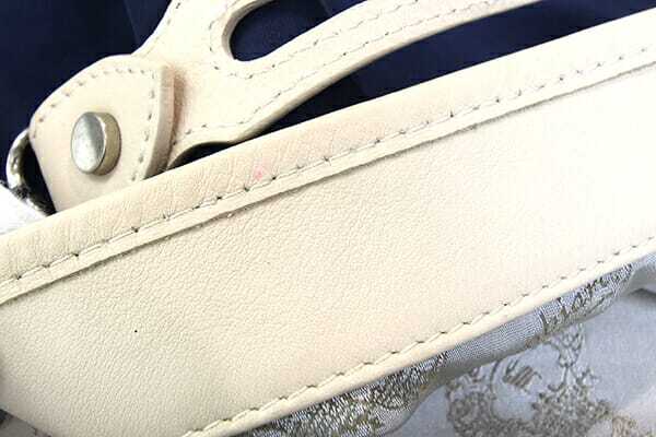 | 状態 | 外側:ナイロン地薄汚れあり。レザー部分にもスレ、薄スレ汚れあり。底面角ステッチに1針ホツレあり。 内側:薄汚れあり。 金具:小キズ、クスミあり。 |