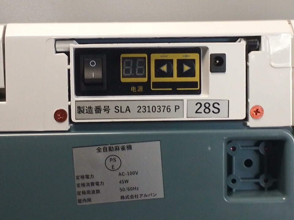 | 沢山の商品の中からアクセス頂き有難う御座います。 ※当方は当商品に詳しくないため、 カテゴリが間違っている場合があります。 もし、間違っていた場合はご了承ください。 ※商品説明、送料について詳細が記されています。 PCの画像も必ず全て目を通されてから入札をご検討ください。 ★商品 alban(アルバン)家庭用全自動麻雀牌 テーブルの天板付き Slim P+28S 牌 青103点 黄38点 ★サイズ(幅×奥行×H高さ㎝) テーブル含むサイズ約83×83×H42㎝ 麻雀台のみのサイズ約83×83×H40㎝ キズ、汚れがあります。 天板の側面が割れています。 簡単な動作確認しました。 スタートボタン2個を同時に押して真ん中部分が迫り上がり、雀牌を全部入れると洗牌をして 画像1のように並べてくれることを確認しました。 青い雀牌だけ入れた時は、雀牌が少ないせいか並べた雀牌が迫り上がらない時がありました。 使用方法について、詳しくないため、 当商品はジャンクとして出品します。 パーツ等については、画像にあるだけです。 電源コードが純正ではないか、本体に挿す際に隙間ができます。 現状引き渡しです。 写真にある品がすべてです。 当方は専門知識はありませんので現状のまま でご理解いただけるようでしたら入札ご検討ください。 素人保管です。 汚れ、ダメージ等があるかと思います。 また商品の性質上多少の傷等がある場合もありますので、 神経質な方や新品同様のコンディションをお望みの方は入札をご遠慮ください (詳しくは画像をご覧ください。) 画像に写っているもので全てです。 見えずらいかとは思いますが、画像をご参照ください。 光の当たり具合やモニターなどの環境によって 実物と若干色が違って見える場合があります。 ご不明な点等ございましたらお気軽にご質問ください。 | ||