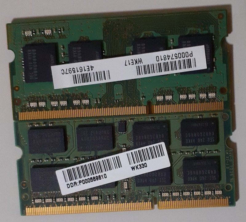 SAMSUNG製のメモリが2枚です。この組み合わせで動作確認しました。