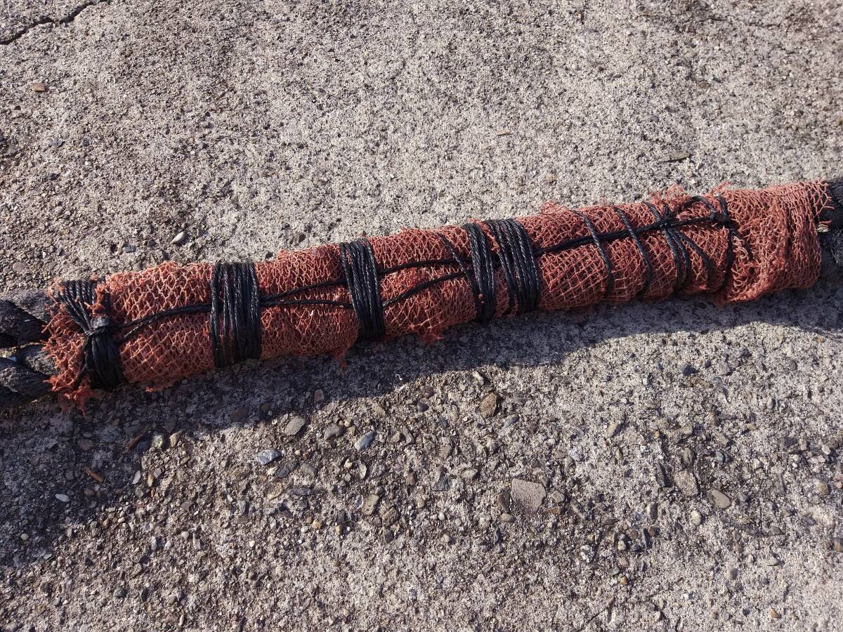 1枚目の写真をご覧ください。この品は、地元の志摩市の定置網設置時、使用したブイロープ組み浮子です。地元の網屋の専門者が、摩擦による破損防止の編み込み完了した製作済みの品になります。製作完了当時、左側の一つ目の球は黒色でしたが、綺麗になるよう、同色の球(13、14枚目の写真でご覧頂ける品)に交換しました。発送の便宜を体積を節約できるように考慮し、新たに交換した黄色の玉は、一緒につながっていない状態です。もし落札後、組み込みをご希望されるならば、こちらも編み込んで発送致します。取引ナビからお知らせ下さい。特にお申し出が無い場合には、1枚目の写真の状態での発送となります。