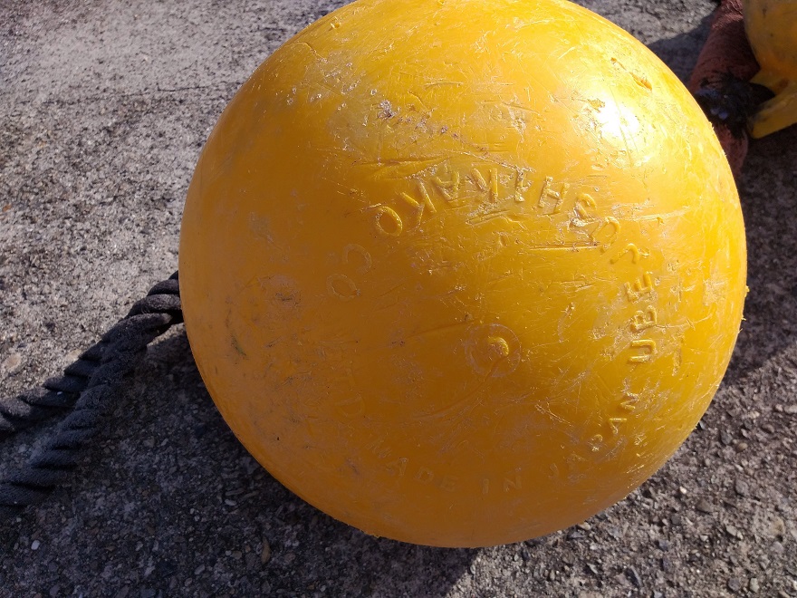●簡要説明:この出品は、海運船業、漁業専門向きの特大特殊樹脂/プラスチック製ブイロープ組み浮子 組み済み 日本製 です。