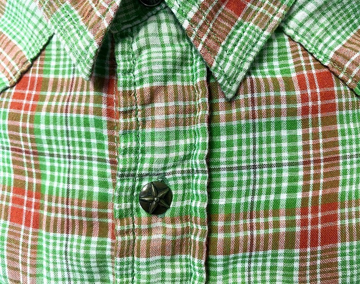 「 TMT (ティーエムティー) 」の L/SL DOUBLE GAZE CHECK SHIRT ロングスリーブ ダブルガーゼ チェックシャツ M GREEN×RED W-GAZE WESTERN BIG HOLIDAY おしゃれ アメカジ ストリート Surf サーフ Vintage ヴィンテージ LOGO ロゴ 定番 人気 コンチョ STAR BUTTON スター です。
