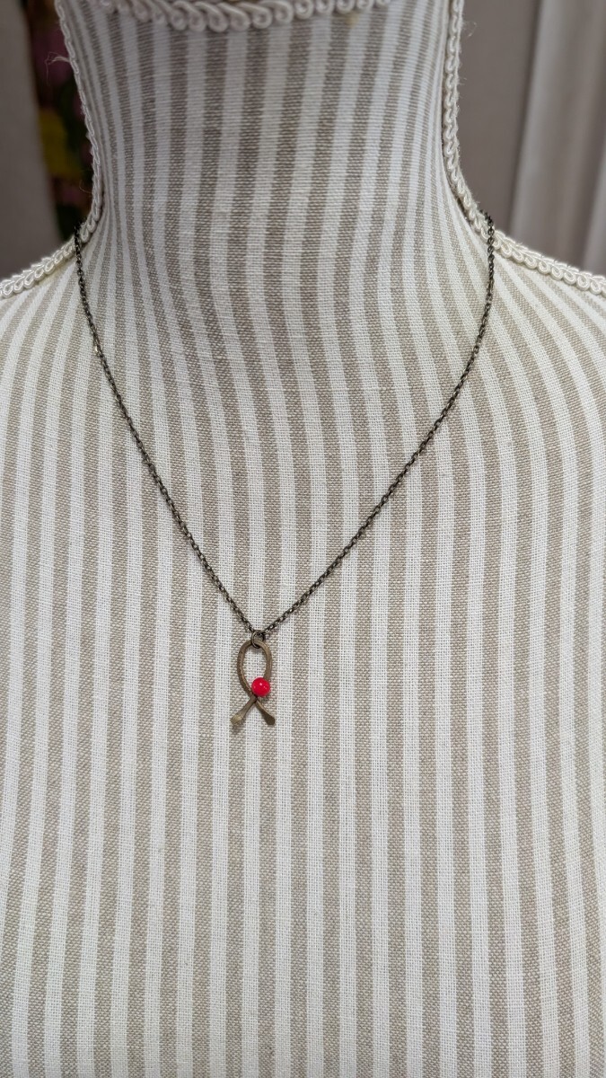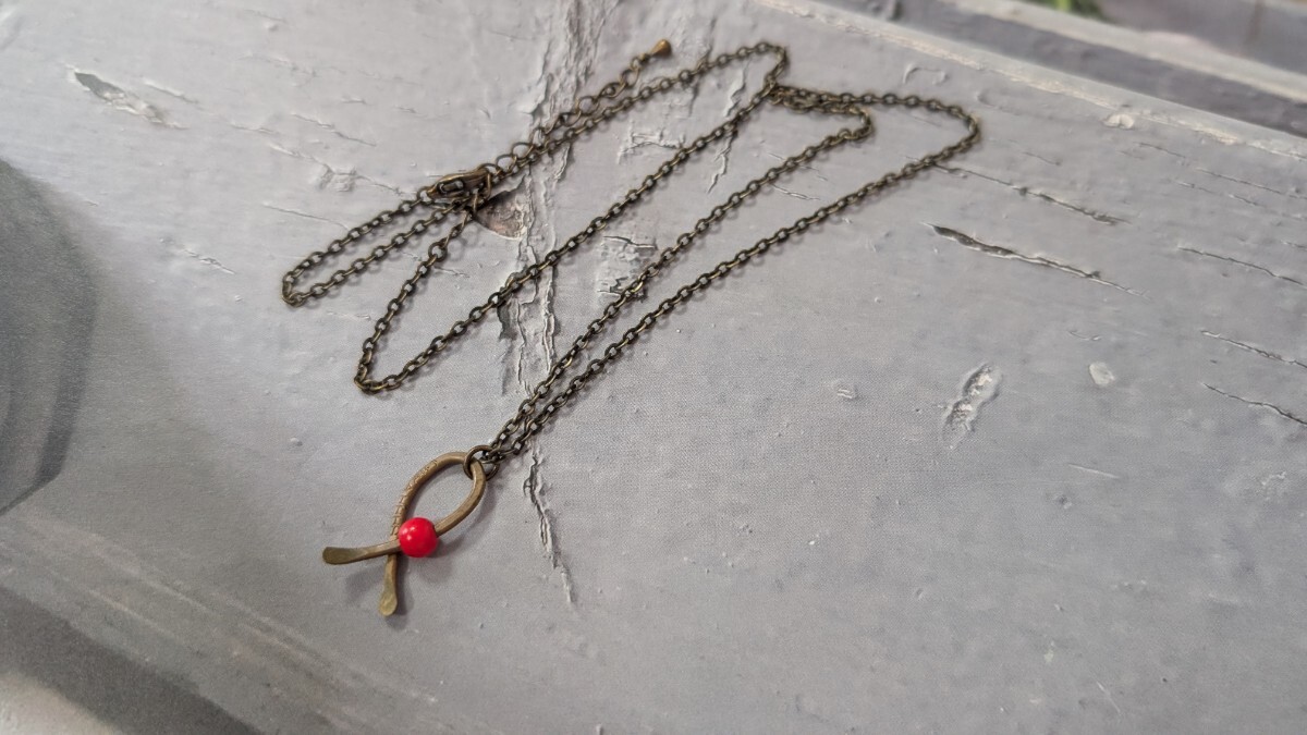 | くすみゴールドカラー&赤ビーズ ネックレス | |||||||||||