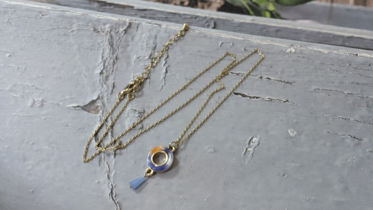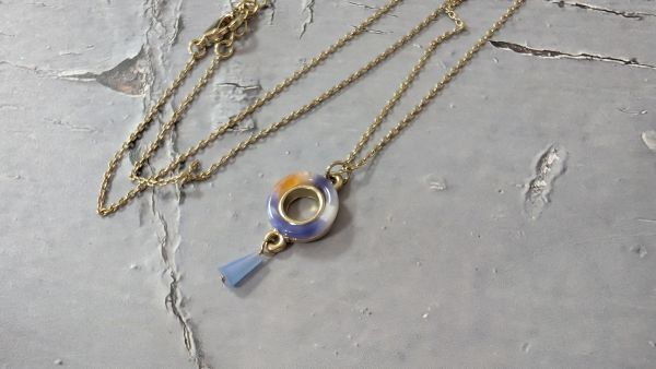 | 青・オレンジ・白MIXリング×ゴールドカラーチェーン ネックレス | |