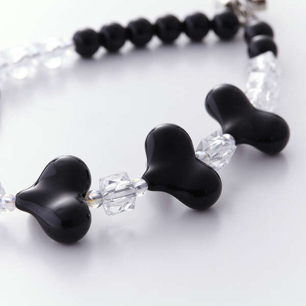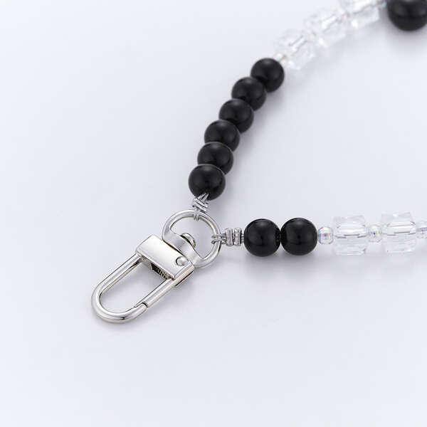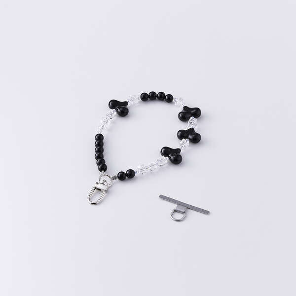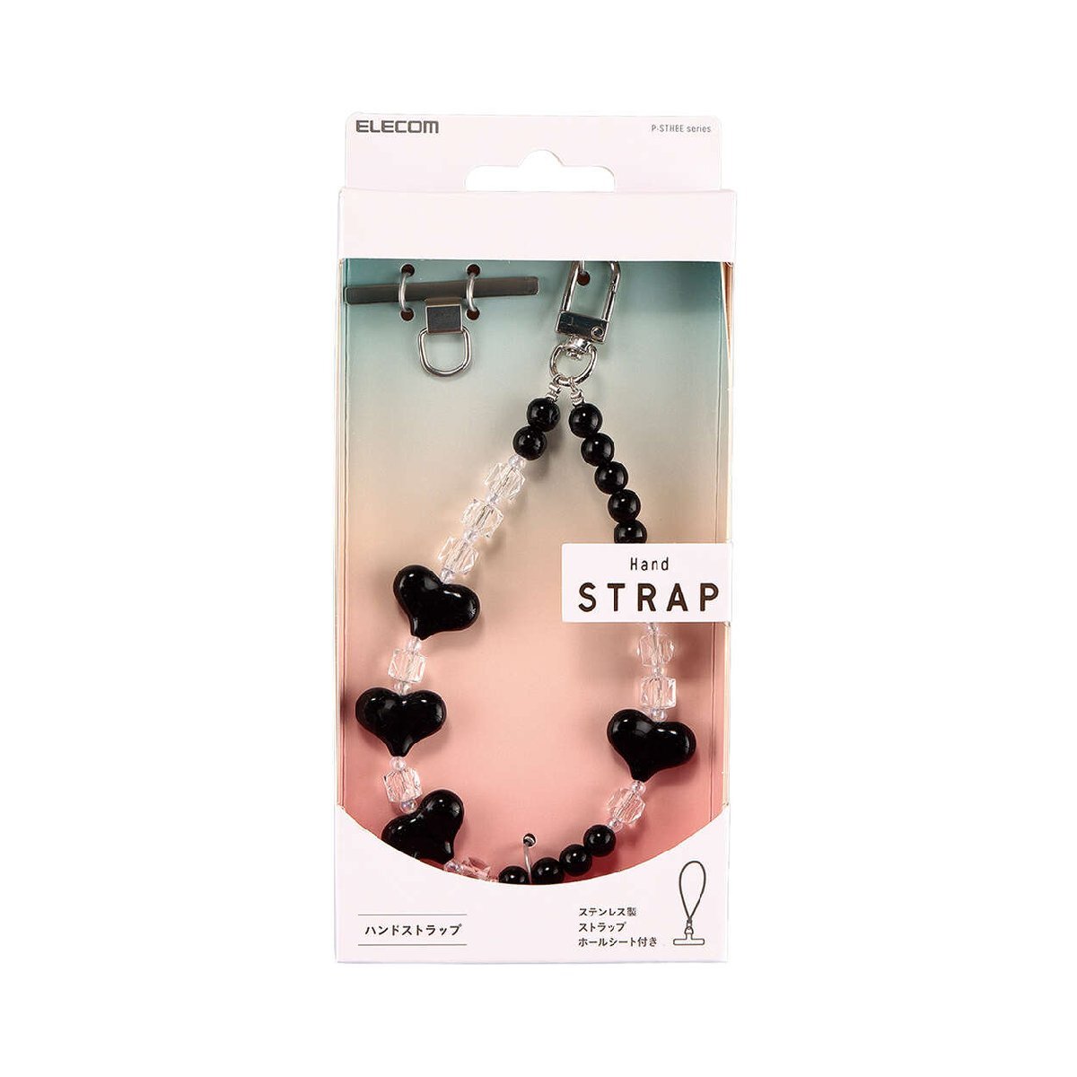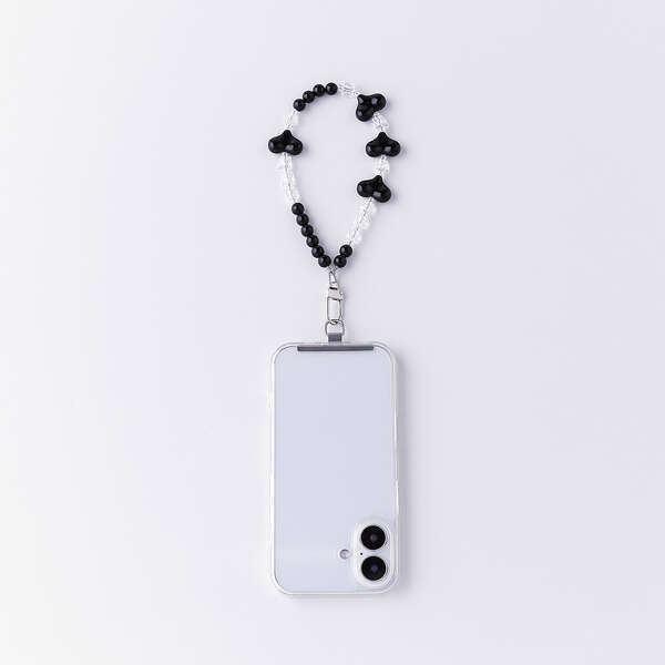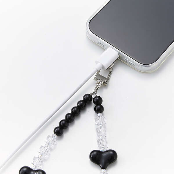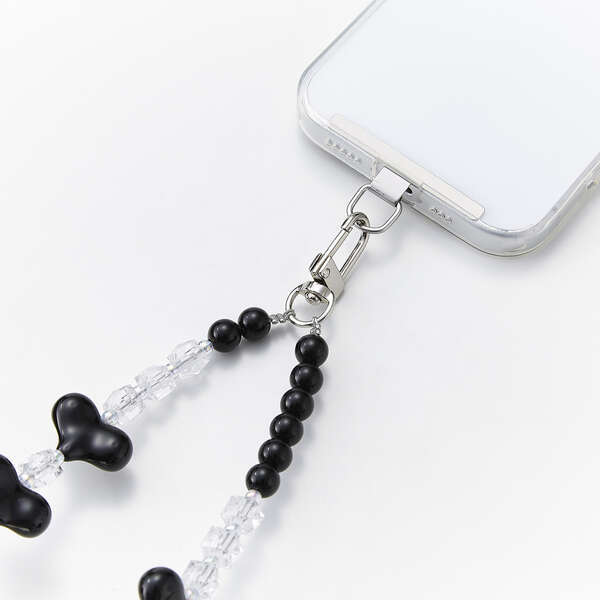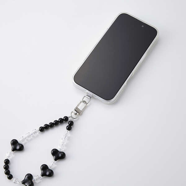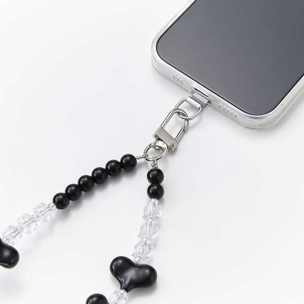 | ●ブラックのハートとビーズが甘すぎず、ほどよく大人っぽさも感じられる ビーズハンドストラップ | |