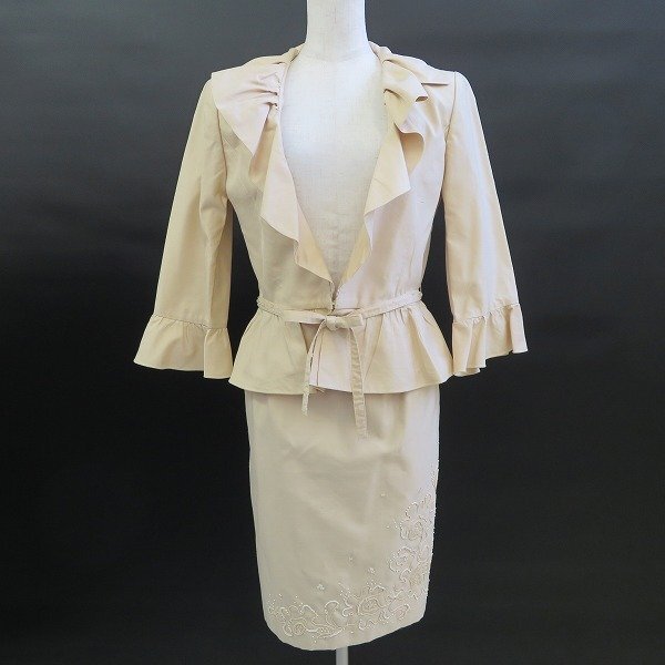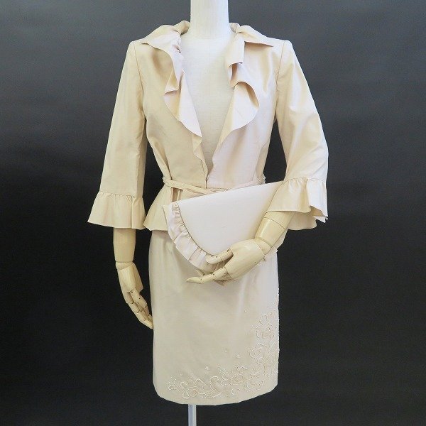 #auc ミスアシダ missashida スカートスーツ ツーピース セットアップ 7 シルク混 フリル ビーズ クラッチバッグ付 レディース [709057]