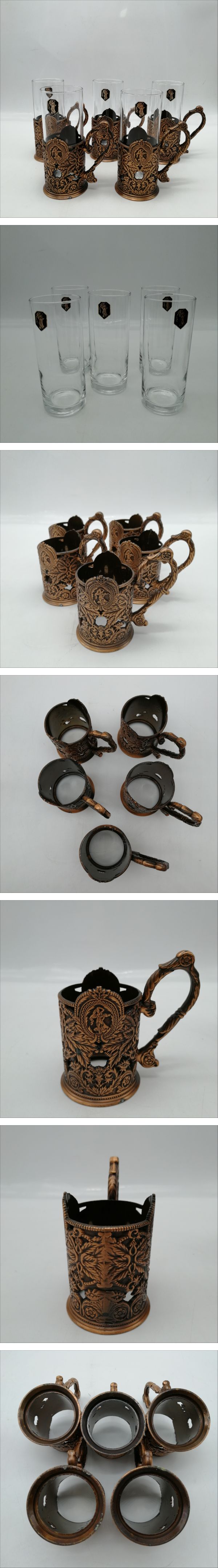 | y3672 SPACE ROMANE ダイキャストグラスホルダー ブロンズ仕上げ レトロ グラス 5客セット インテリア アンティーク調 食器 | |||