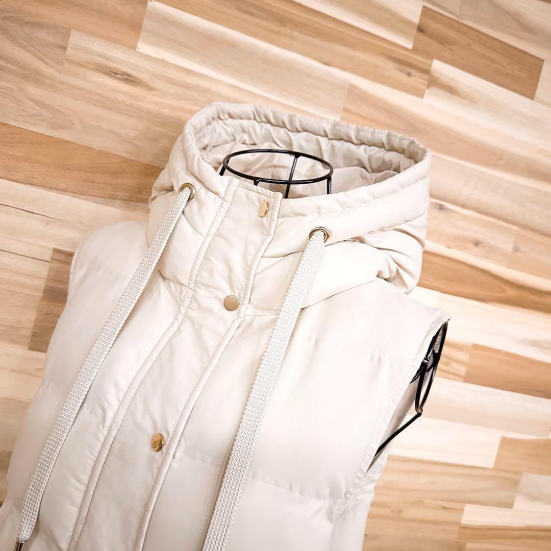 ふわふわの中綿が包み込むような暖かさを持ちながら、軽やかな着心地が嬉しい一着。上品な淡いベージュにゴールドの金具が高級感を添え、縦にすっと伸びるロング丈のシルエットがスタイルを美しく見せてくれるZARAのベストです。既に完売。1つのアイテムを数多く生産しないブランドのため今では手に入りにくくなっているお品です。※LGスタイラーにて除菌リフレッシュ・スチームクリーニング済みです。