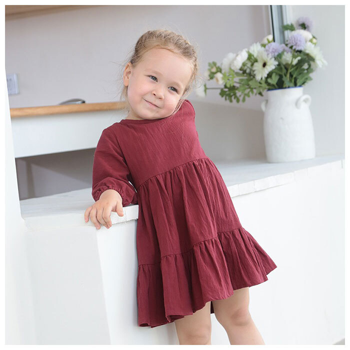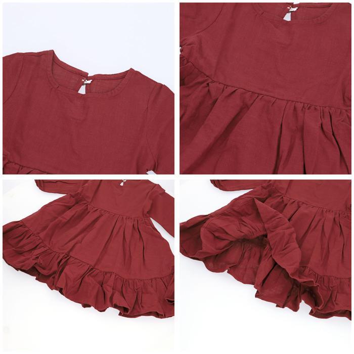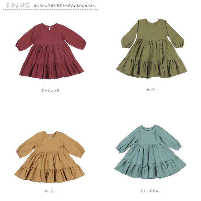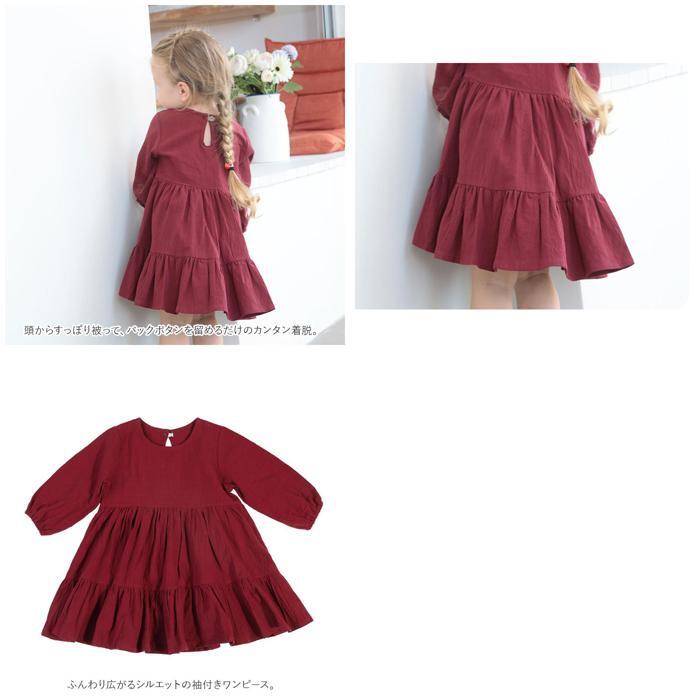 | 商品説明 | ・・ナチュラル可愛い、キッズ用のワンピース♪ ・サラッとした生地感で、軽い着心地◎ ・袖口にギャザー入りで、腕まくりもラクチン。 ・頭からすっぽり被って、バックボタンを留めるだけのカンタン着脱。 ・ふんわり広がるシルエットの袖付きワンピース。 ・春や秋はもちろん、冬はお手持ちのカーディガンなどを羽織れば、ロングシーズン活躍! |