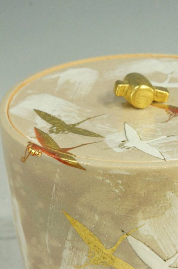 滋賀県の杣山焼を再興させた南口閑粋の色絵水指です。