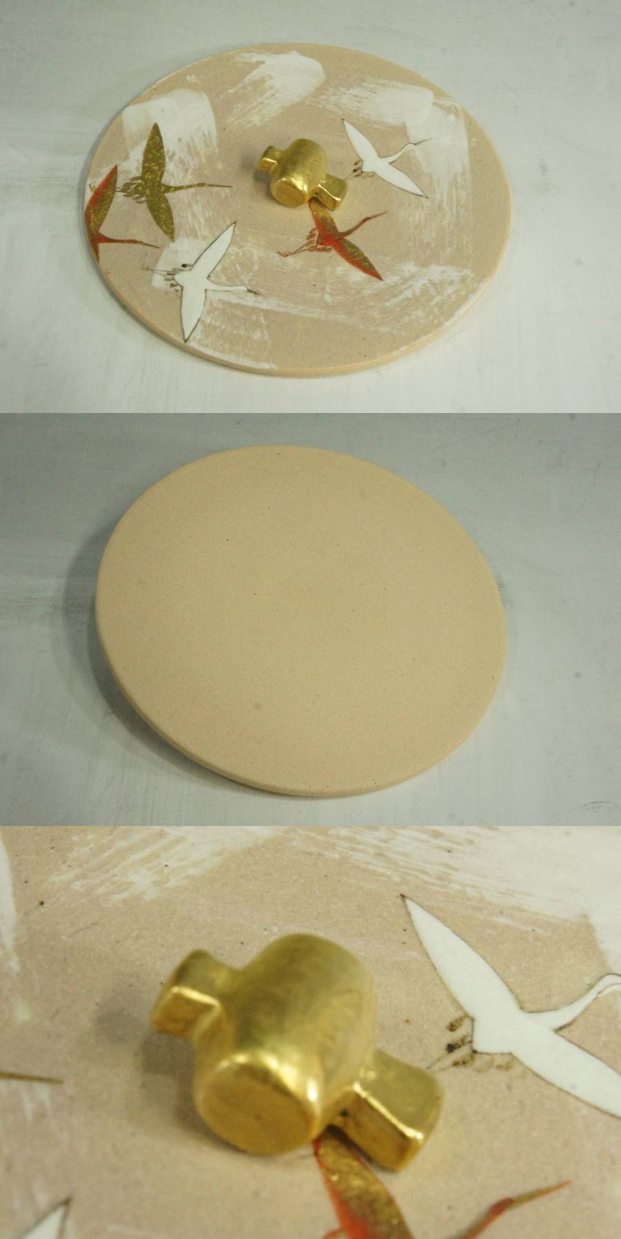 金彩の下が赤く見えるのは、赤絵の具を施して一回焼成し、
