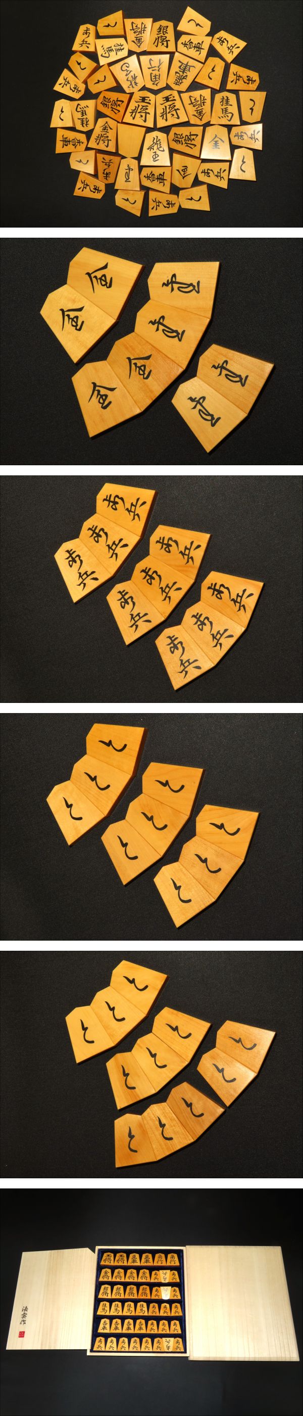 1000円スタート▲法雲作双玉宗歩好島黄楊斑入上柾目彫埋将棋駒▲新品桐平箱付