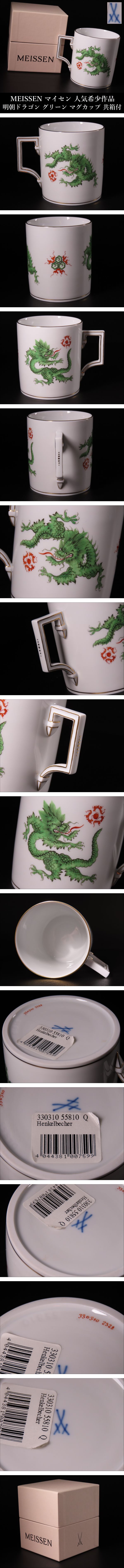 【ONE'S】MEISSEN マイセン人気希少作品 明朝ドラゴン グリーン マグカップ 珈琲碗 辰 龍 共箱付 西洋美術 | |||