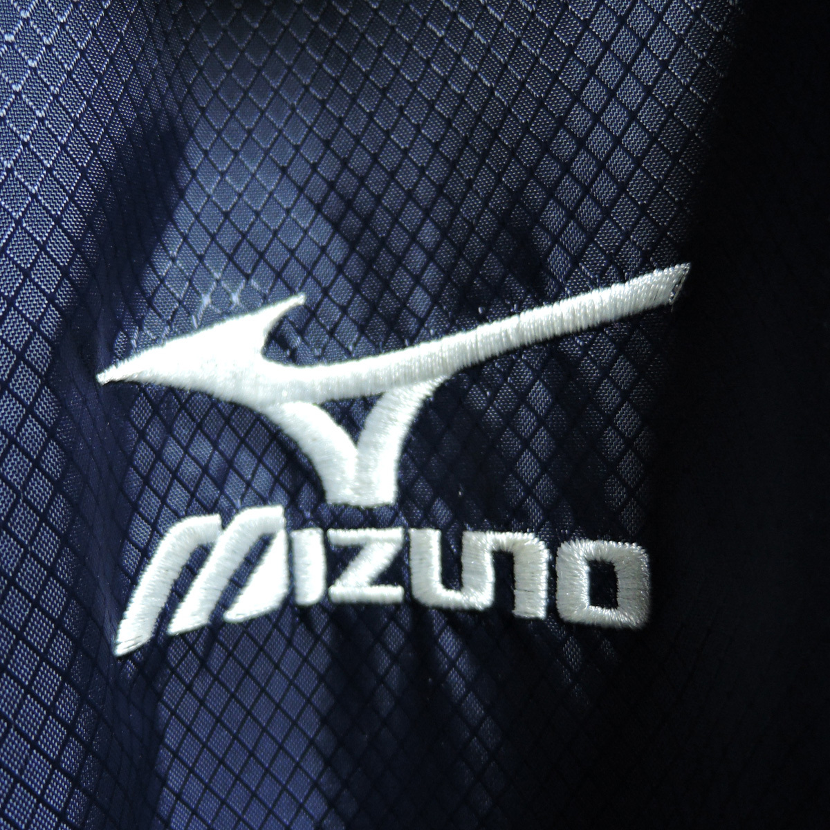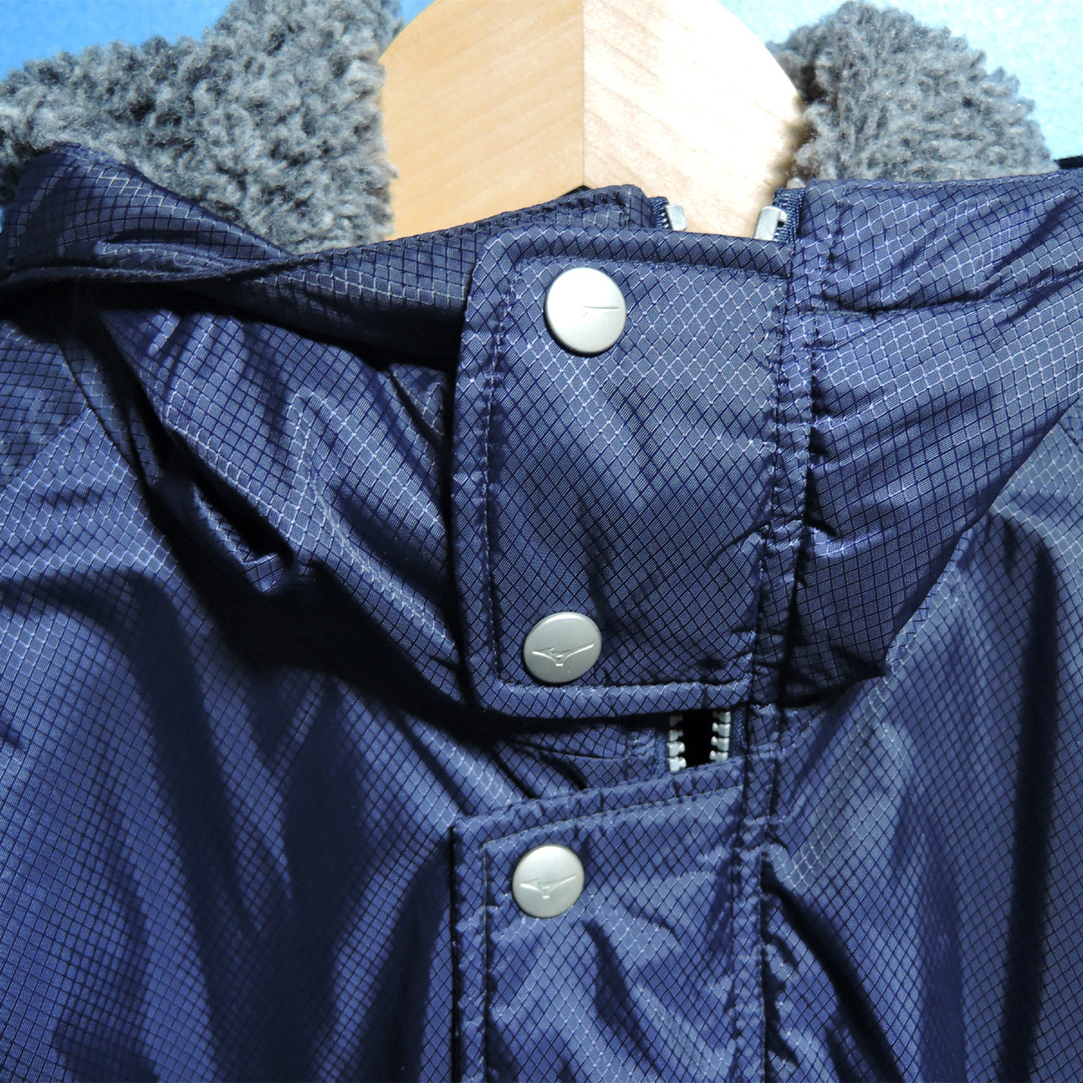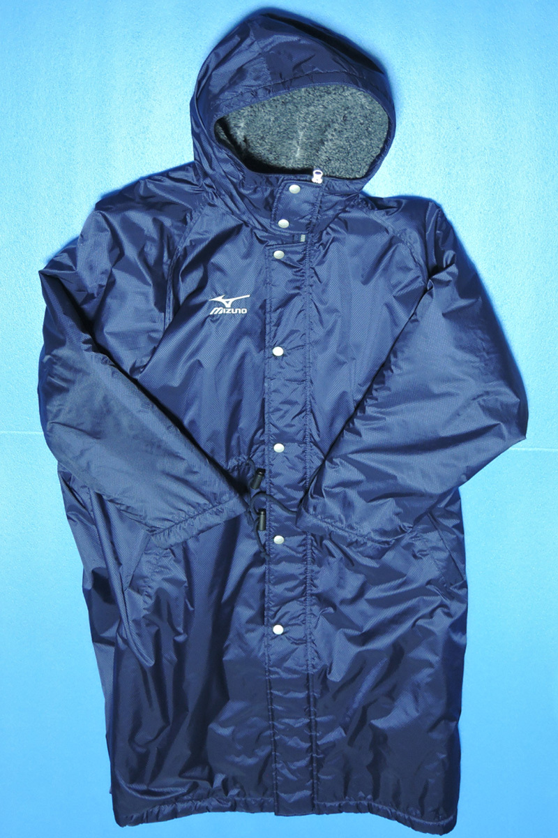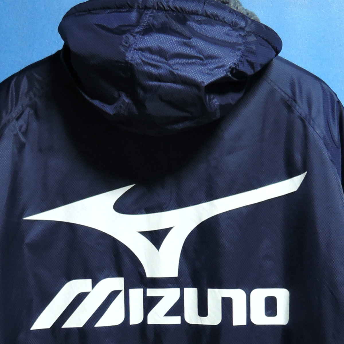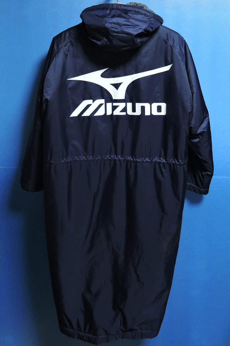 ミズノ ロングベンチコート 紺色(ネイビー)Lサイズ 中古美品 背中ビッグロゴ入り | |
