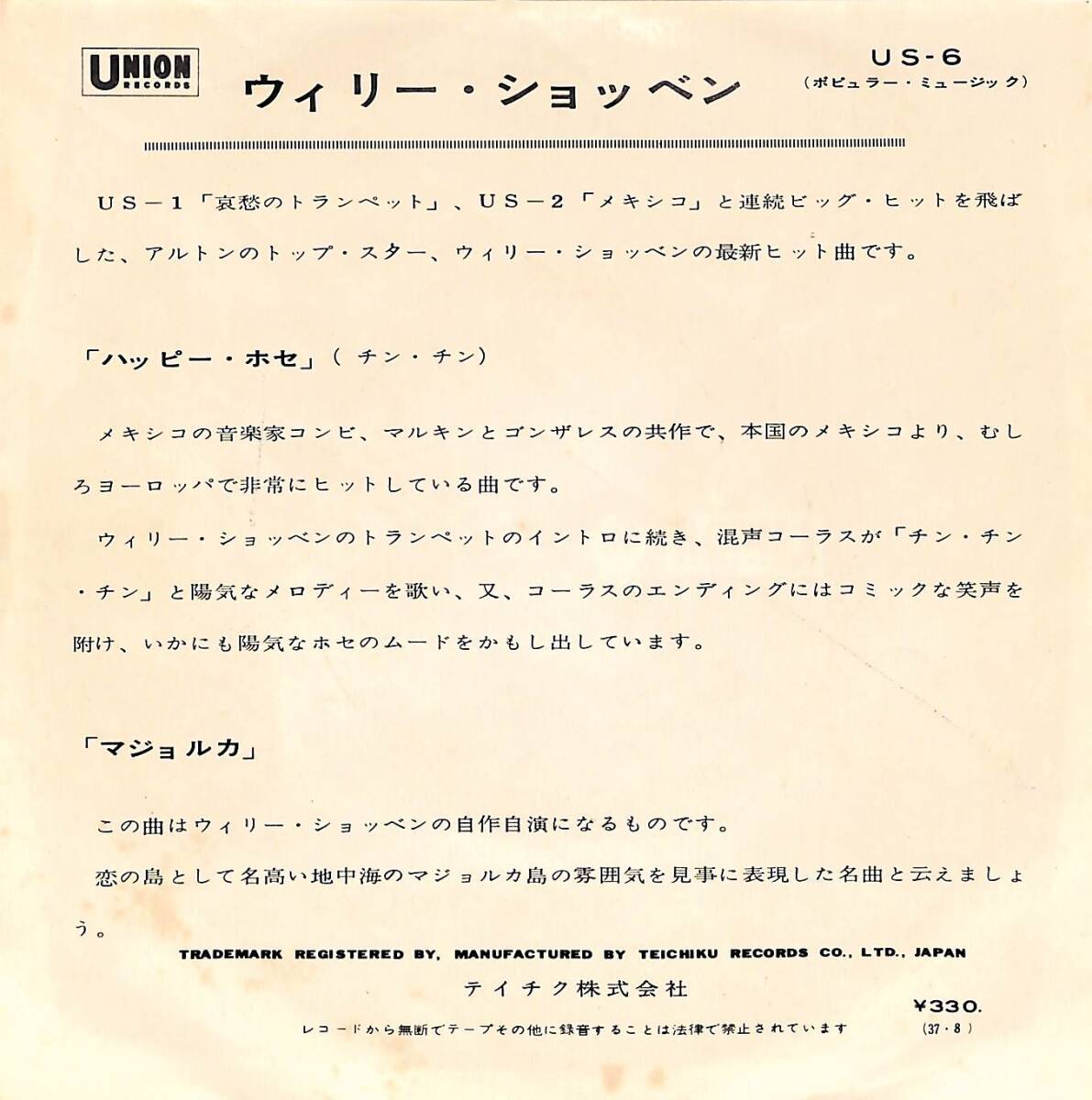 C00198970/EP/ウイリー・ショッベン楽団「ハッピー・ホセ/マジョルカ(US-6)」