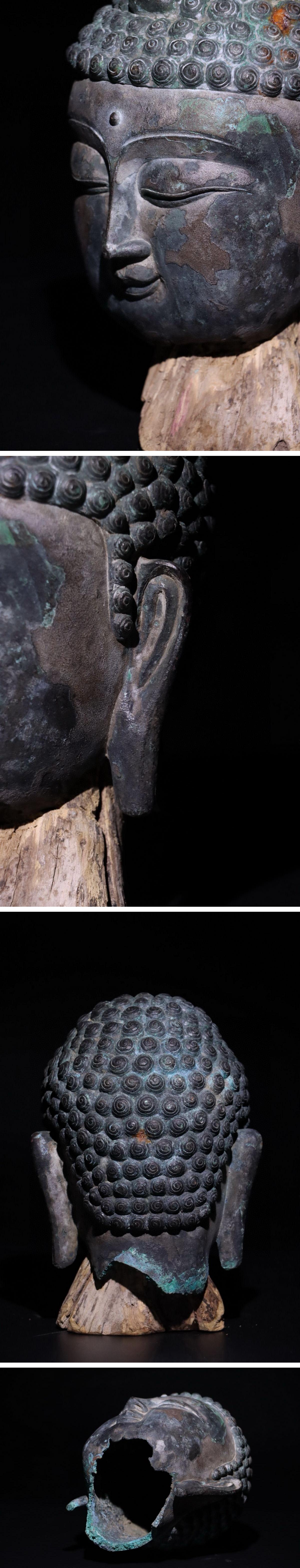 【清】某有名オークション購入 明時代 青銅器 阿弥陀如来頭像 仏教古美術 古置物 古擺件 古美術 時代コレクション7L9-GF5