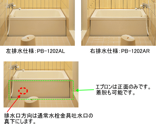 浴槽は左排水仕様、右排水仕様よりお選びいただけます。