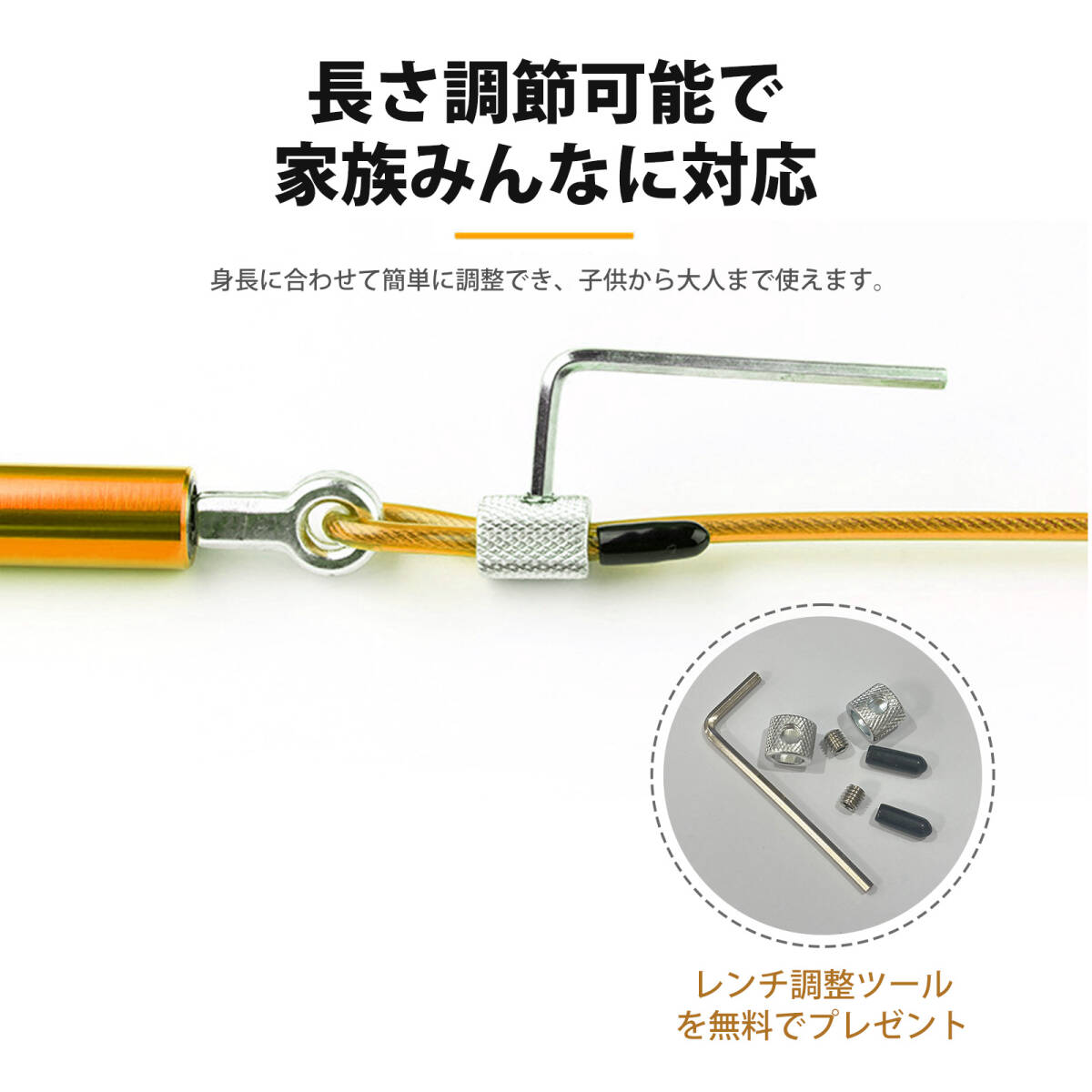 | この商品について | 【耐久性抜群のワイヤーロープ構造】:スチールワイヤー芯にPVCコーティングを施し、摩耗に強く長持ち。軽快な回転でロープが絡まず、スムーズなジャンプを実現します。 【人間工学デザインのアルミ合金ハンドル】:握りやすい形状で手にしっかりフィット。軽量ながらも高級感があり、長時間の使用でも疲れにくい仕様です。 【負荷トレーニングにも対応】:ウェイトバーを装備したハンドル。筋力アップや持久力強化を目指す方に最適で、汗をかいても滑りにくい防滑加工付き。 【ベアリング搭載でスムーズ回転】:高性能ベアリングを採用し、引っかかりのないスピーディーな回転を実現。二重跳びやスピードトレーニングもラクラク。 【長さ調整可能・幅広い年齢層に対応】:ロープの長さは自由に調整可能。中学生から大人まで、性別や身長を問わず幅広く使用できます。 |