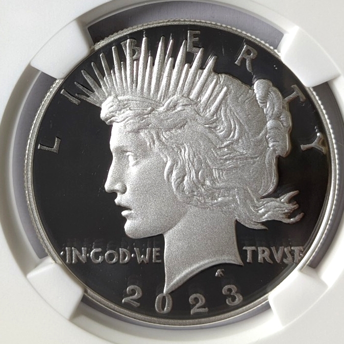 こちらは 2023年 アメリカ合衆国発行「ピースダラー(平和の女神銀貨)プルーフ」 です。