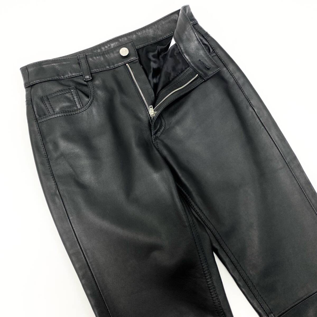 | AIによるサイズ診断 | ウエスト35cm・股上30cm・股下76cm・渡り27cm・裾幅16.5cmのスリムストレートシルエット。 身長160〜168cm前後の方でフルレングス着用となり、細身〜標準体型の方に最もバランス良くフィットします。 ややハイウエスト設計で脚長効果があり、タックインスタイルにも適しています。 ラムレザー特有の柔らかさがあり、細身ながら動きやすい一本です。 |