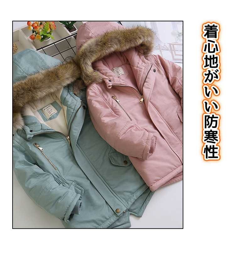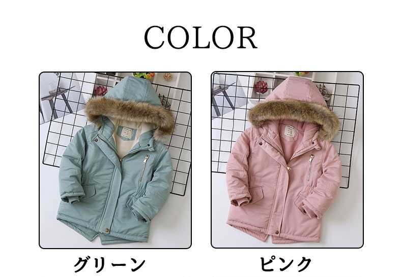 【デザイン】新設計登場、細かいところまで丁寧に仕立ててあります。前開きをファスナーで開閉するデザイン。両脇にのポケットが付いています、寒い時ポケットに手を入れて暖かくなります。フード付いて冷風を防ぎ、子どもの頭を守て防寒性を発揮します。 フード周りに保温性の高いファーをたっぷりと使用しています。