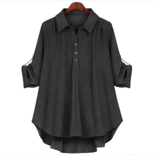 春夏 カジュアル ゆったり 無地 コットン リネン 大きいサイズ おしゃれ 普段着 長袖 ブラウスシャツ★灰/Lサイズ [浏览原始页面]