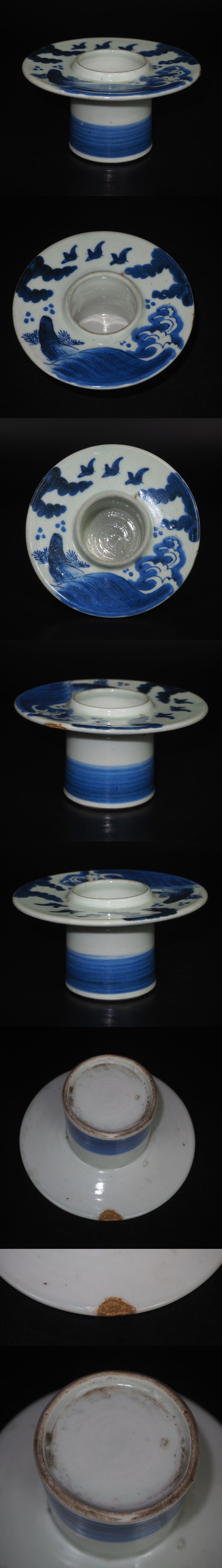 | 商品説明 | 高さ約 6.3cm 幅約 11.7cm ご覧のように、江戸時代染付盃台です。目立たないところですが、一箇所補修があります、詳しくは写真でご確認ください。 |