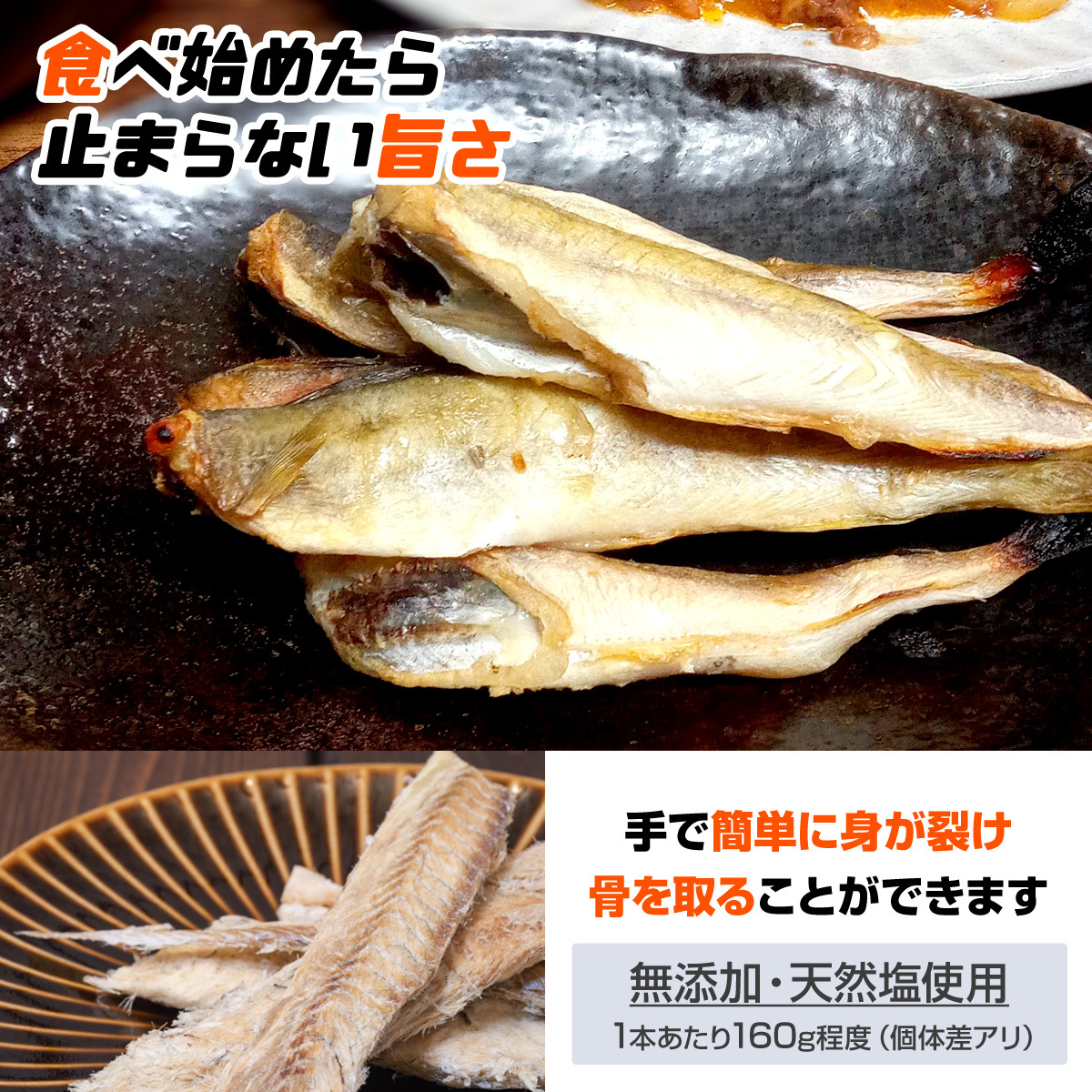手で簡単に身を裂くことができ、骨も取れるので、ご家庭ではもちろんの事バーベキューなどでも、とても美味しくお召し上がりいただく事ができます